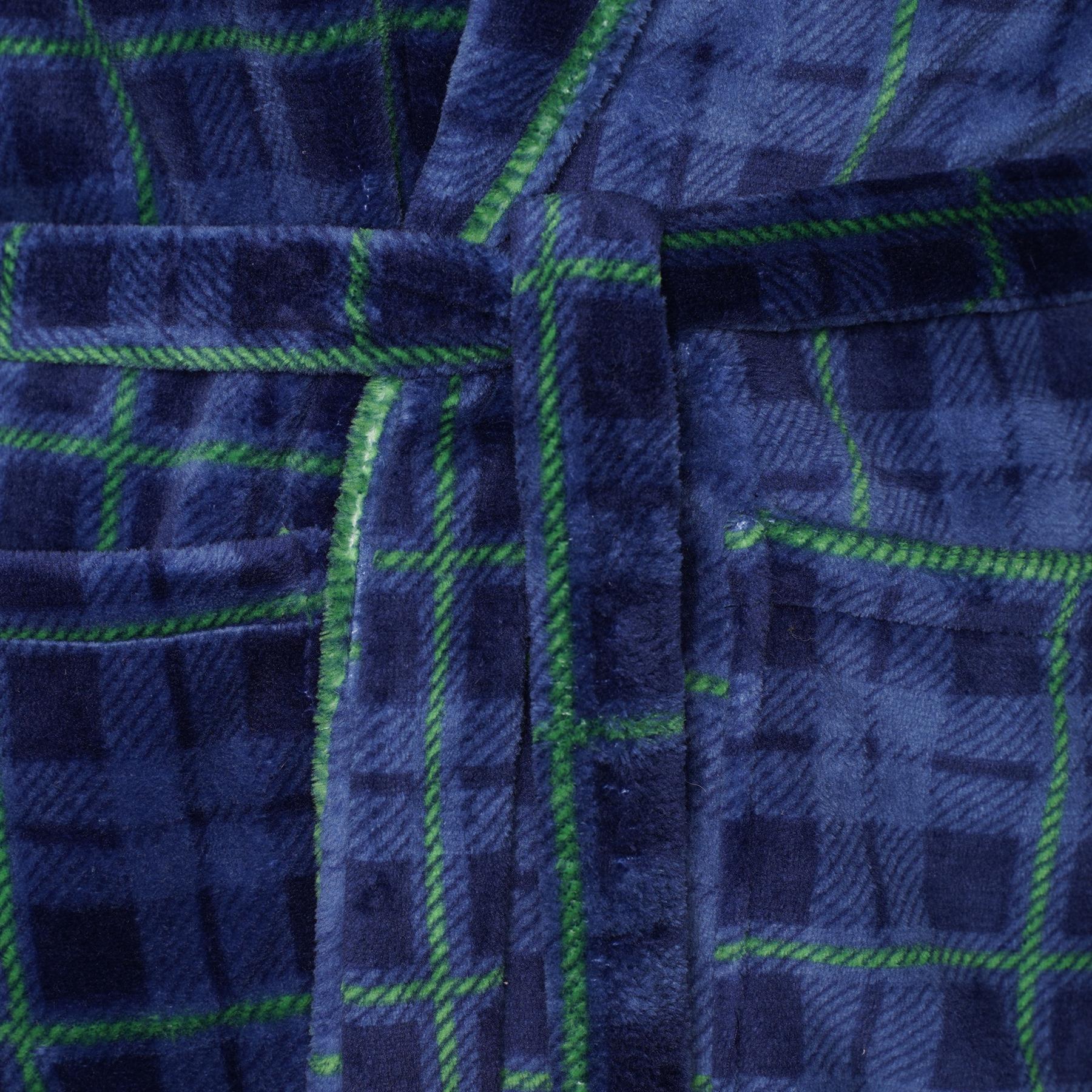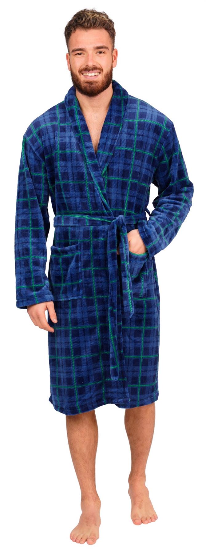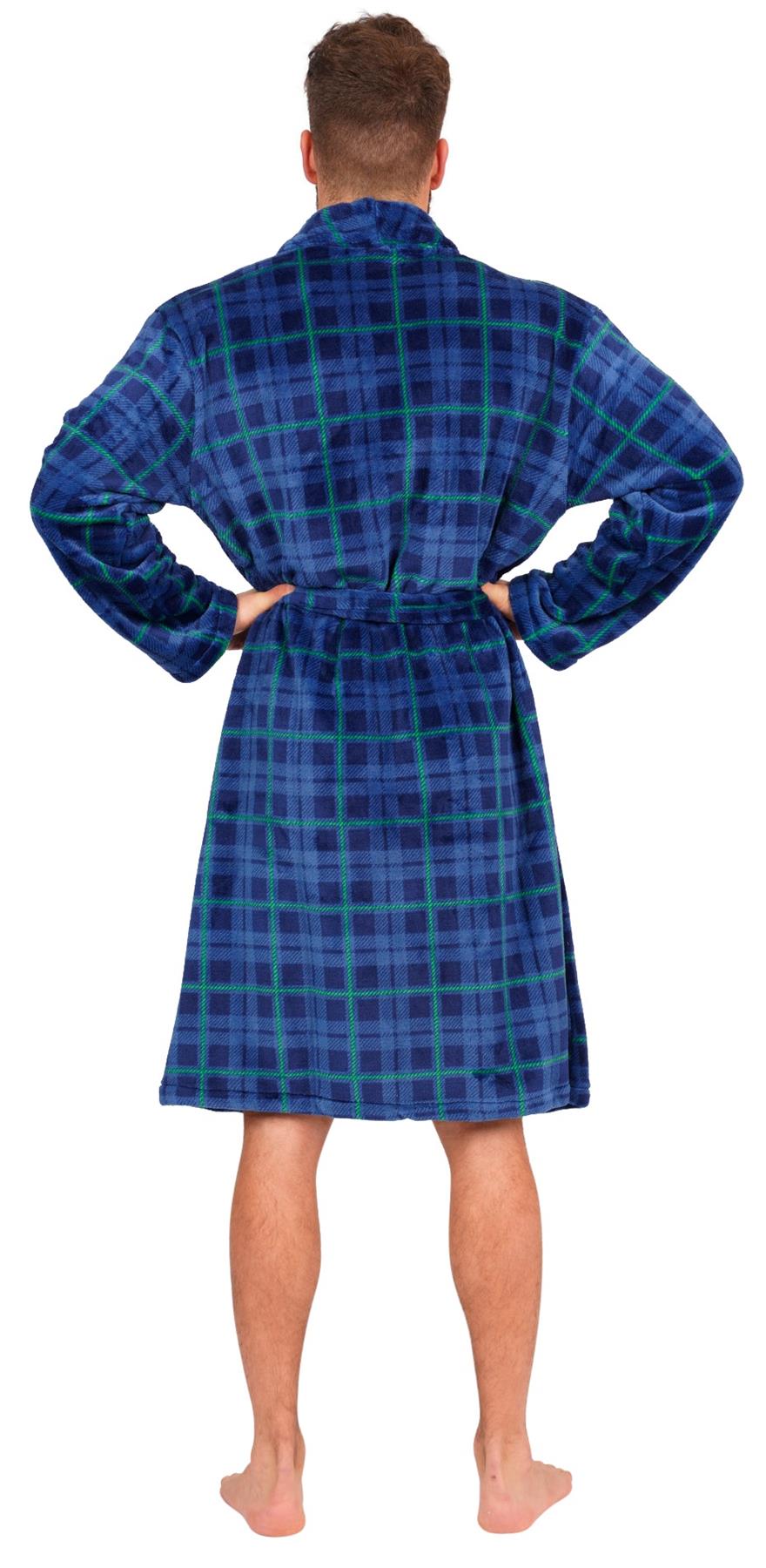 Mens Blue Checked Flannel Fleece Bathrobe