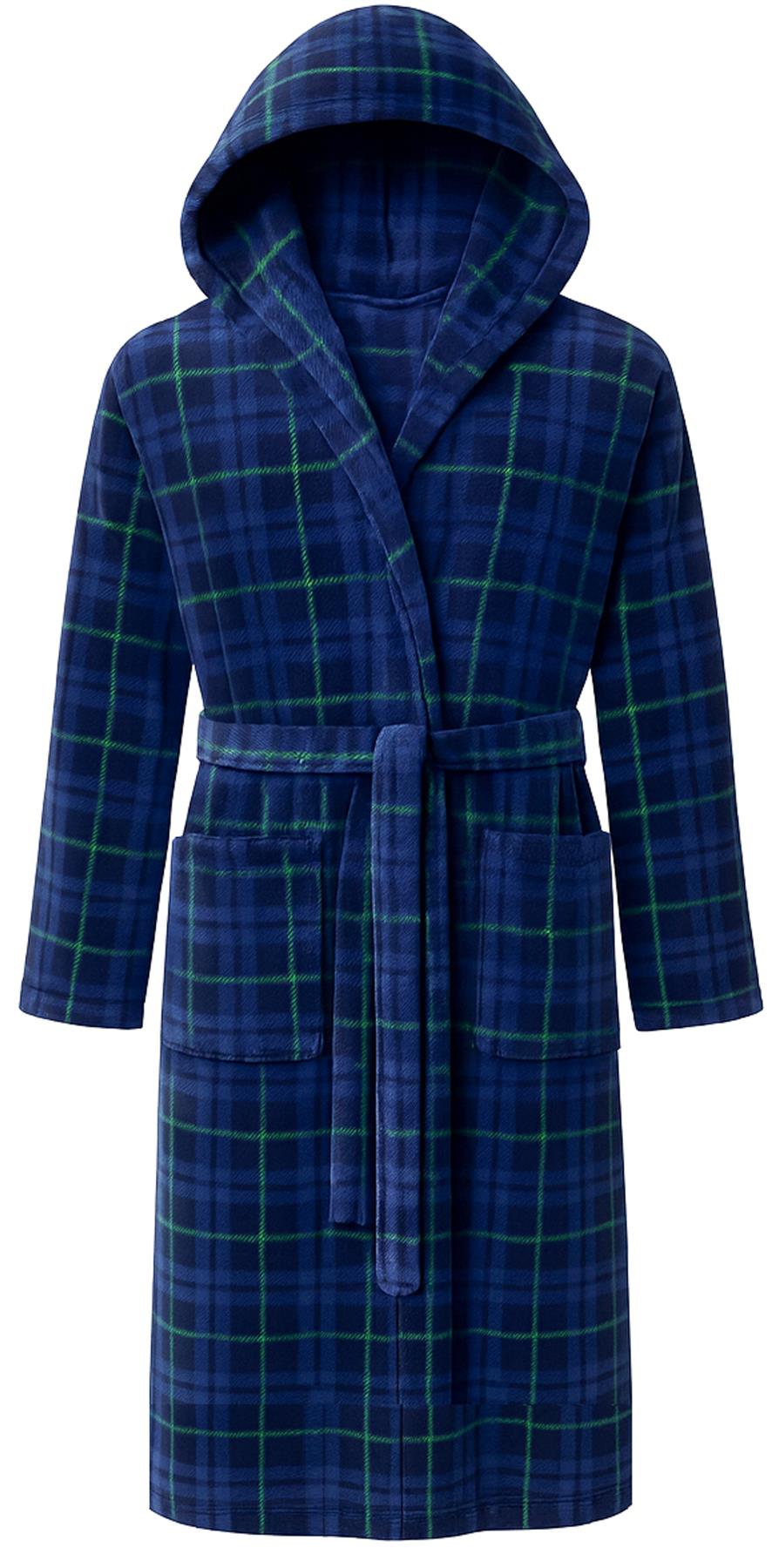 Mens Hooded Fleece Dressing Down Soft Cosy Warm Bathrobe Hood