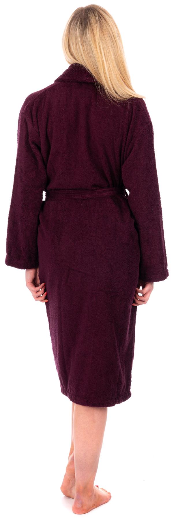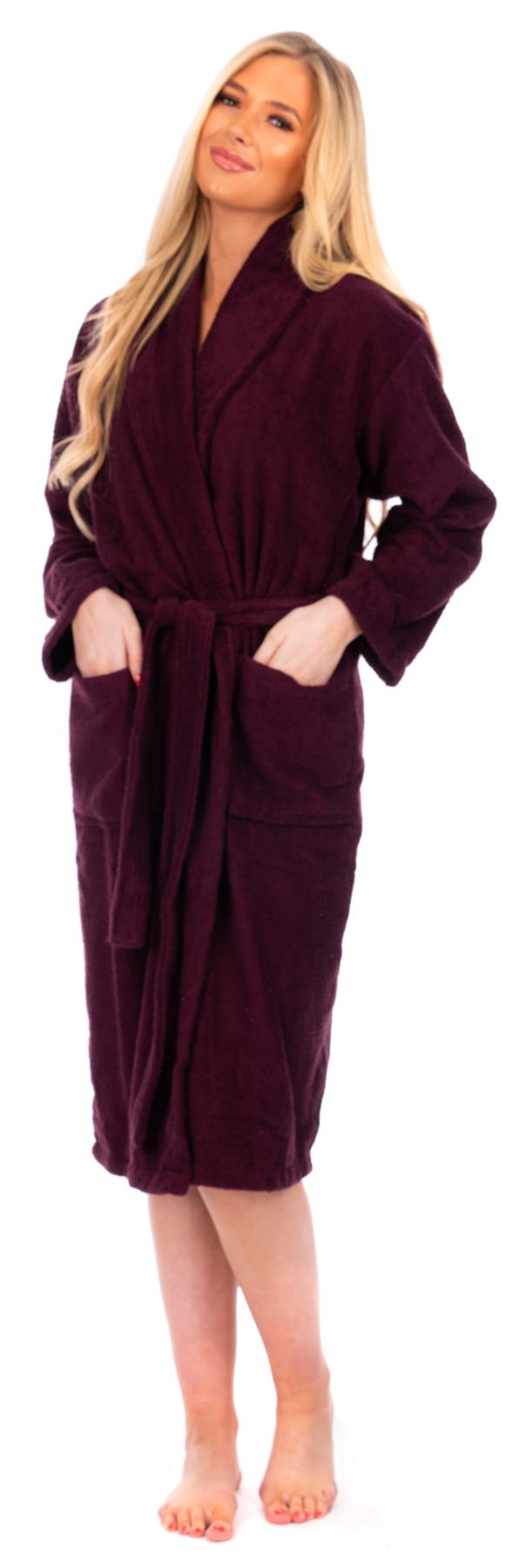 Ladies Aubergine Cotton Towelling Shawl Collar Bathrobe