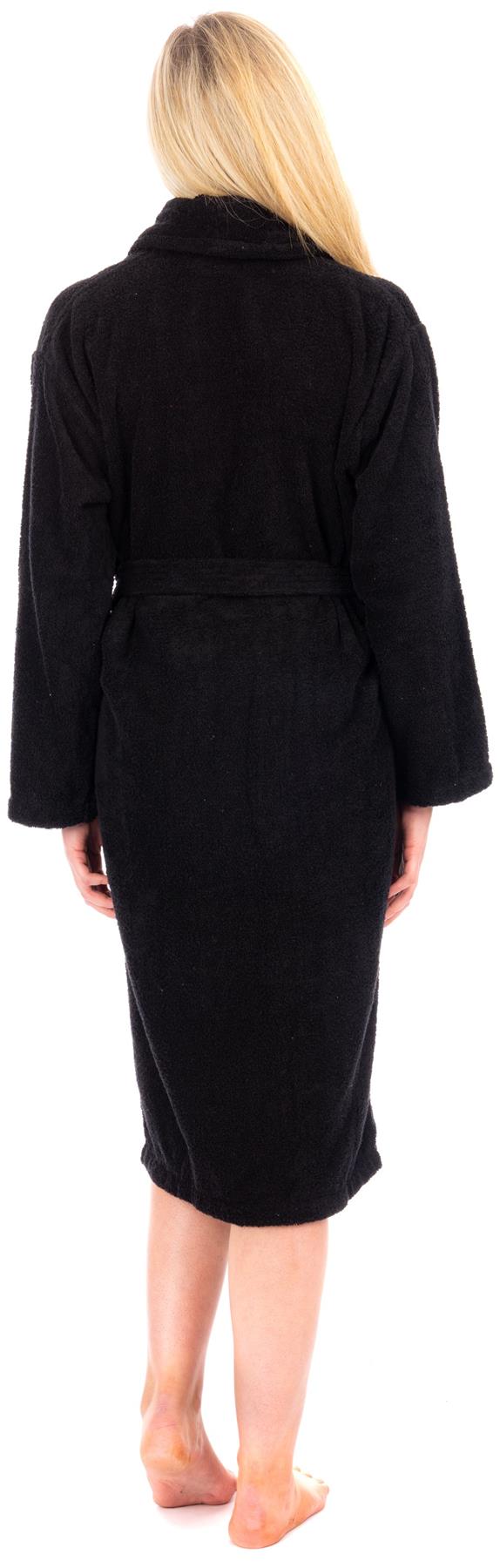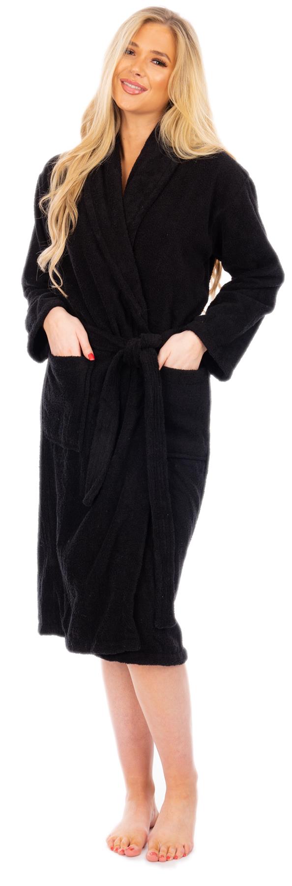 Ladies Black Cotton Towelling Shawl Collar Bathrobe