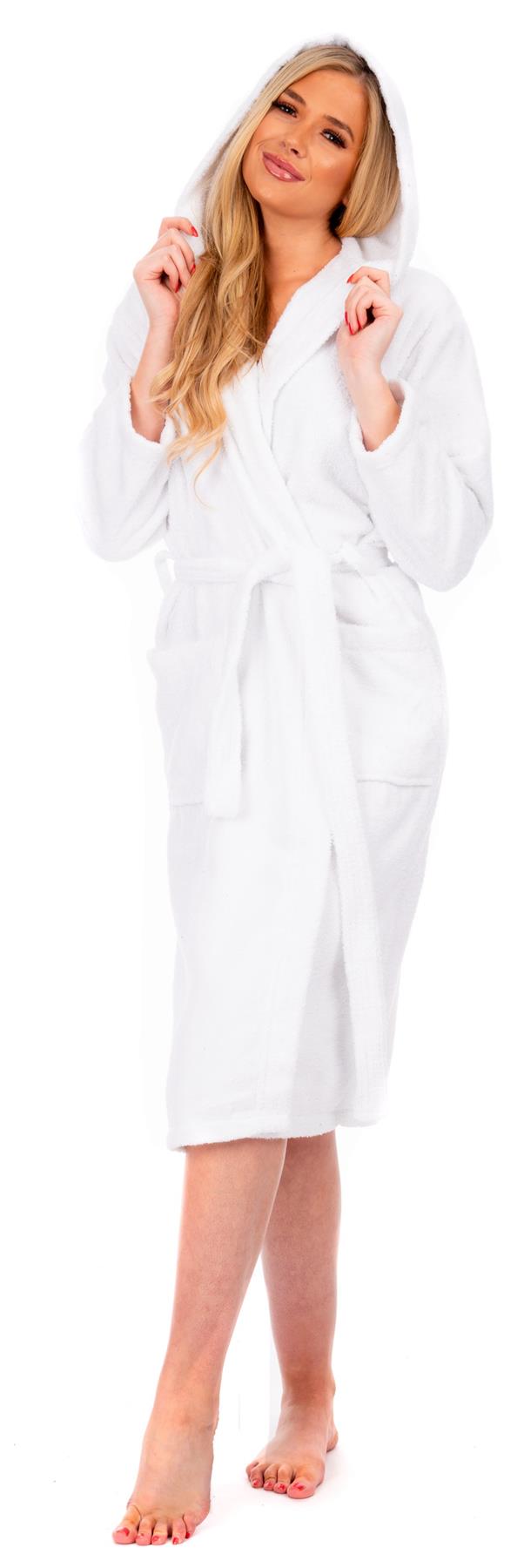 Ladies heavy terry towelling, absorbent robe. The luxurious soft, combed cotton will keep you warm when coming out of the shower or it can be used as a house coat to keep you extra cosy when at home.