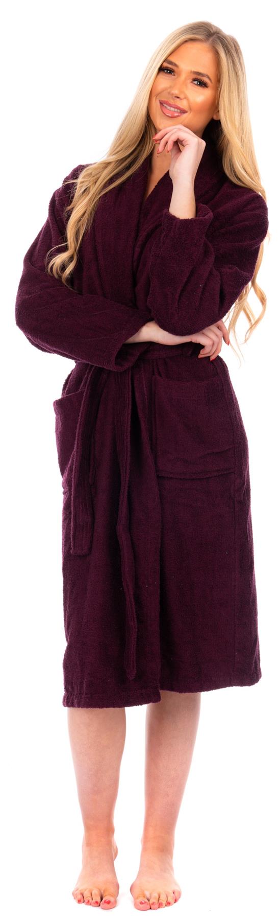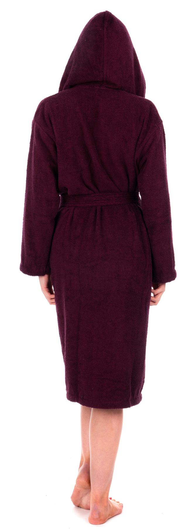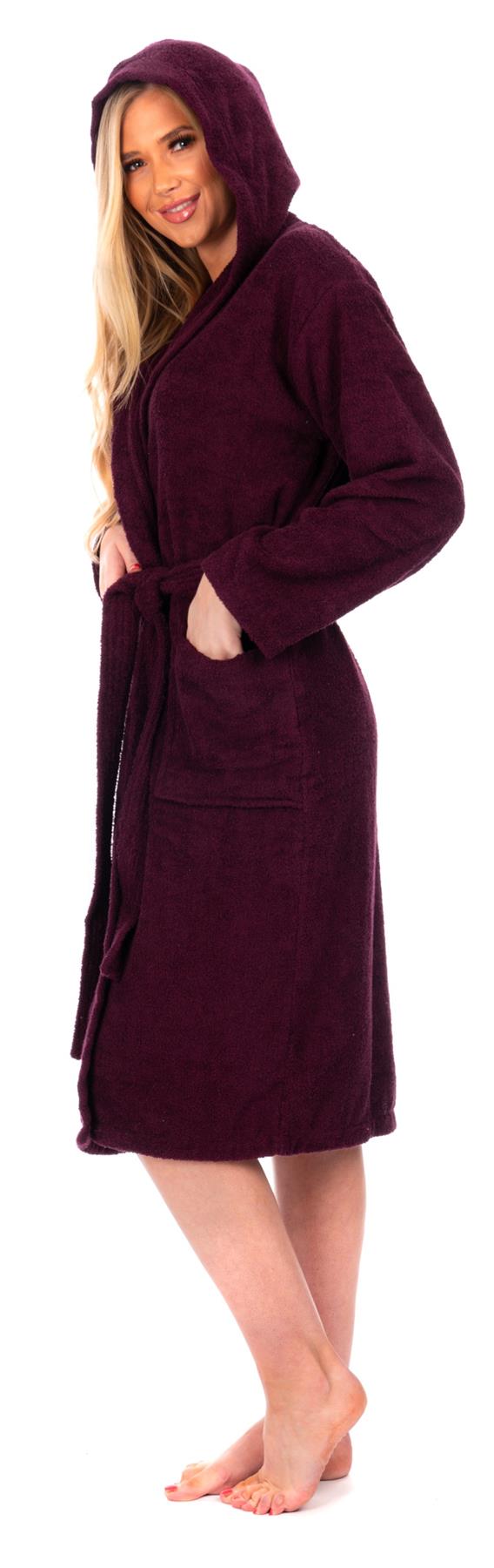 Ladies Cotton Towelling Hooded Bathrobe Aubergine