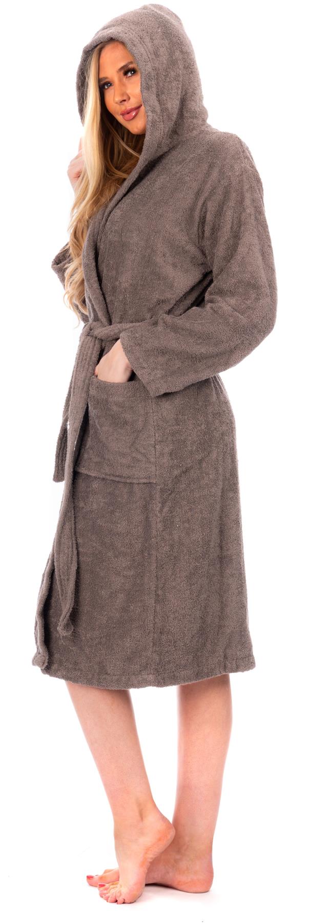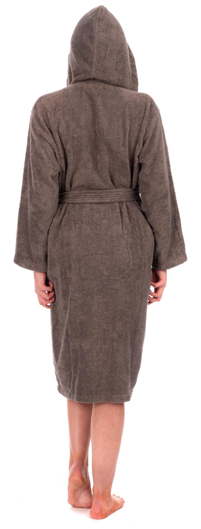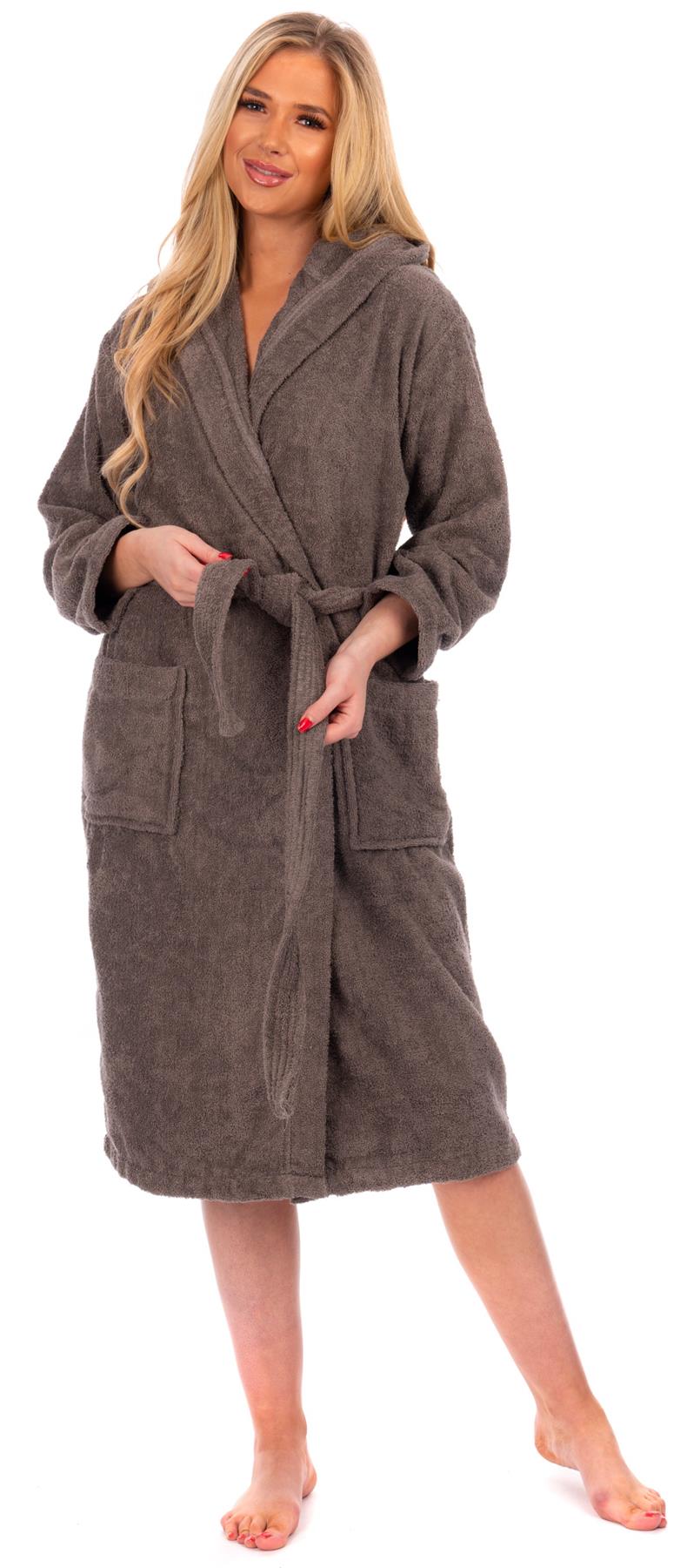 Ladies Cotton Towelling Hooded Bathrobe Slate