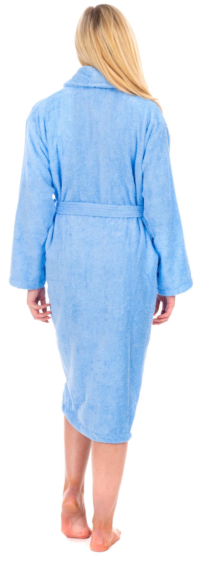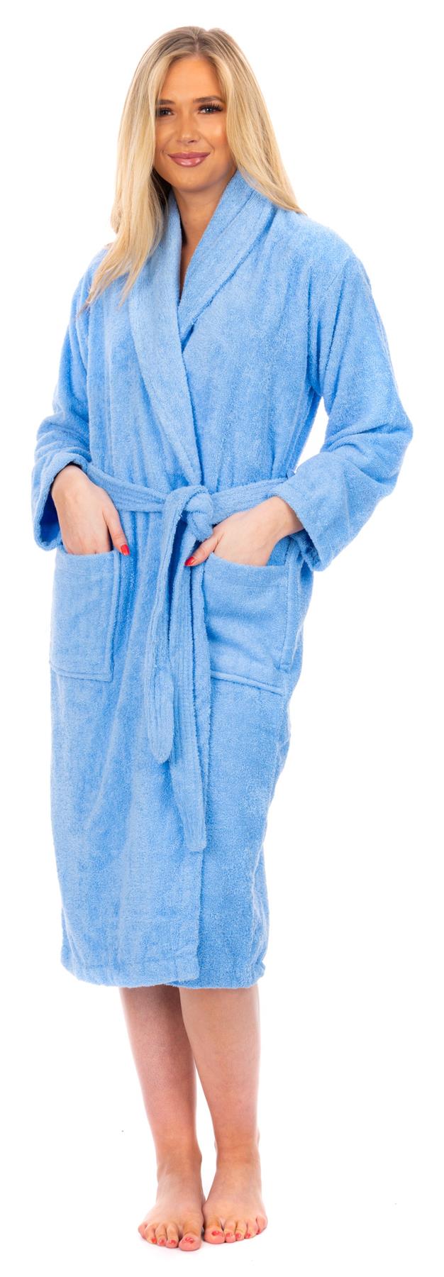 Ladies Light Blue Cotton Towelling Shawl Collar Bathrobe