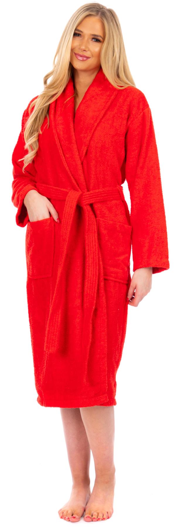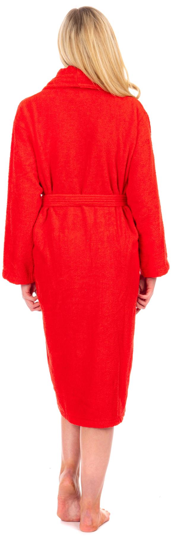 Ladies Red Cotton Towelling Shawl Collar Bathrobe