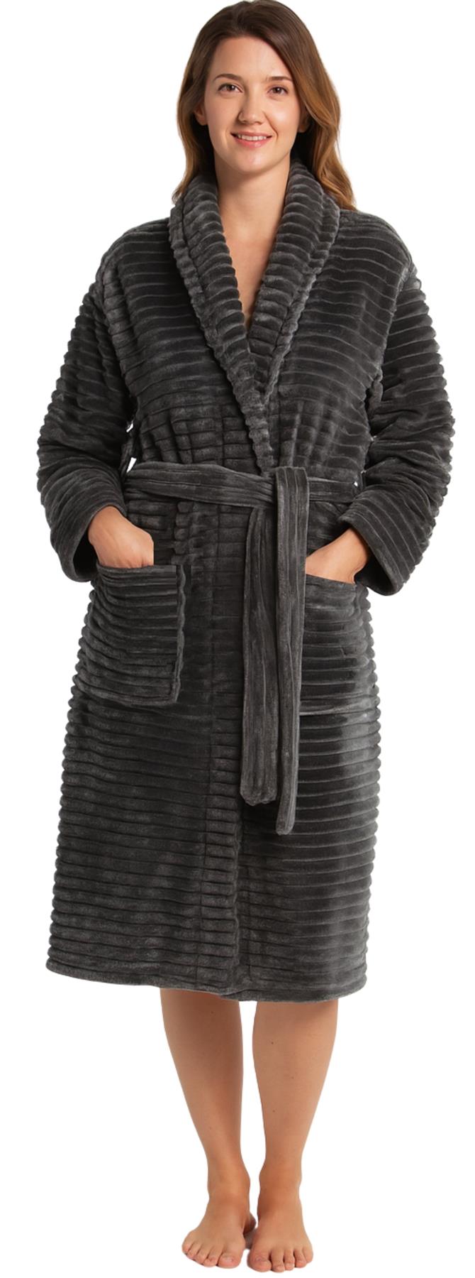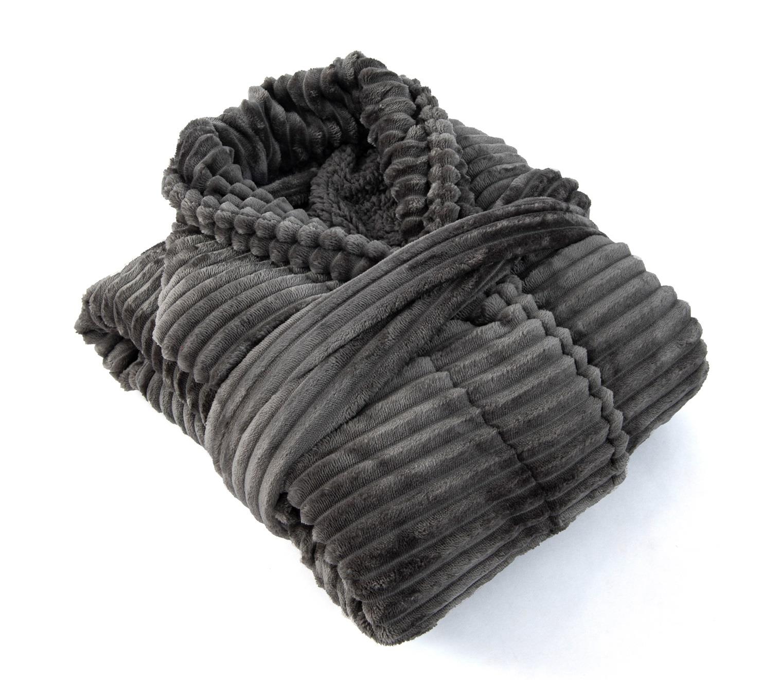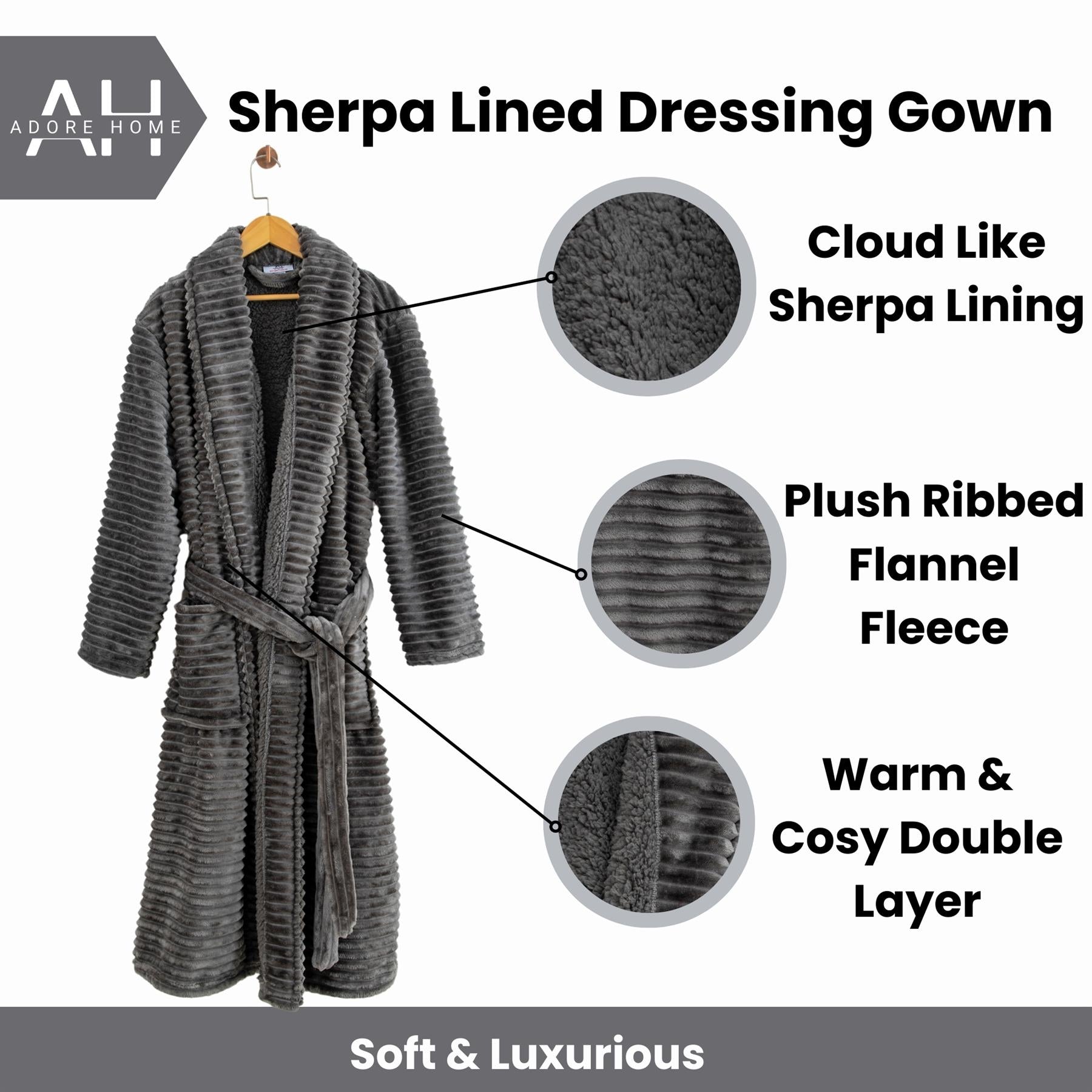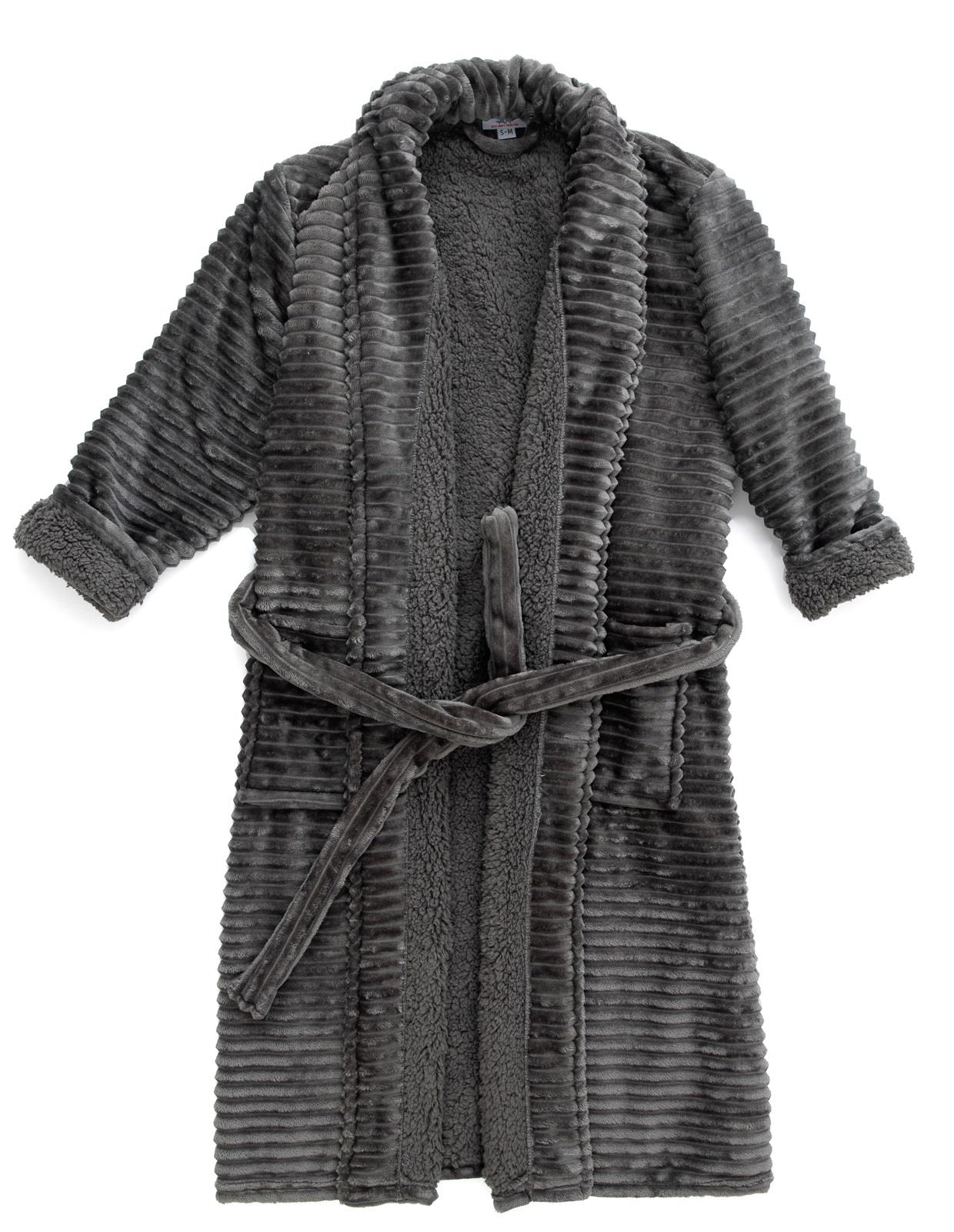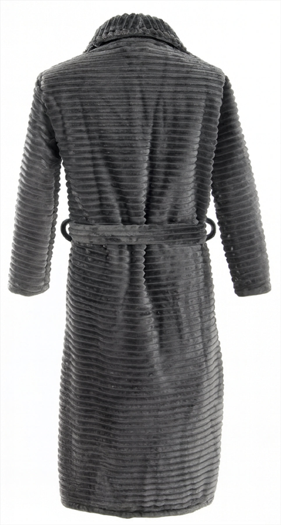 Ladies Ribbed Dressing Gown With Sherpa Lining, Charcoal