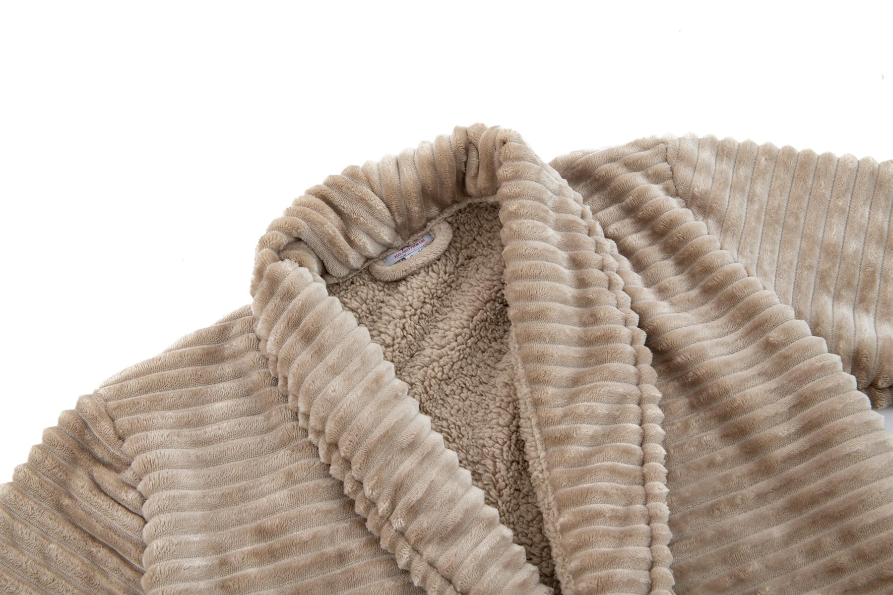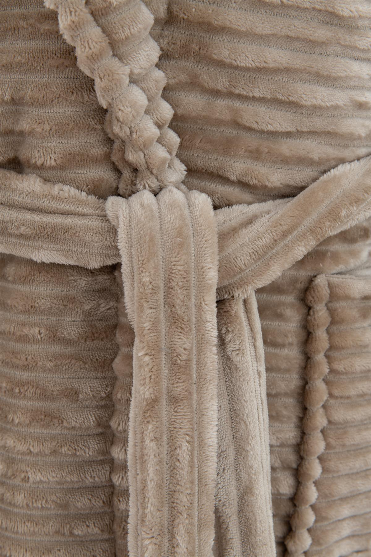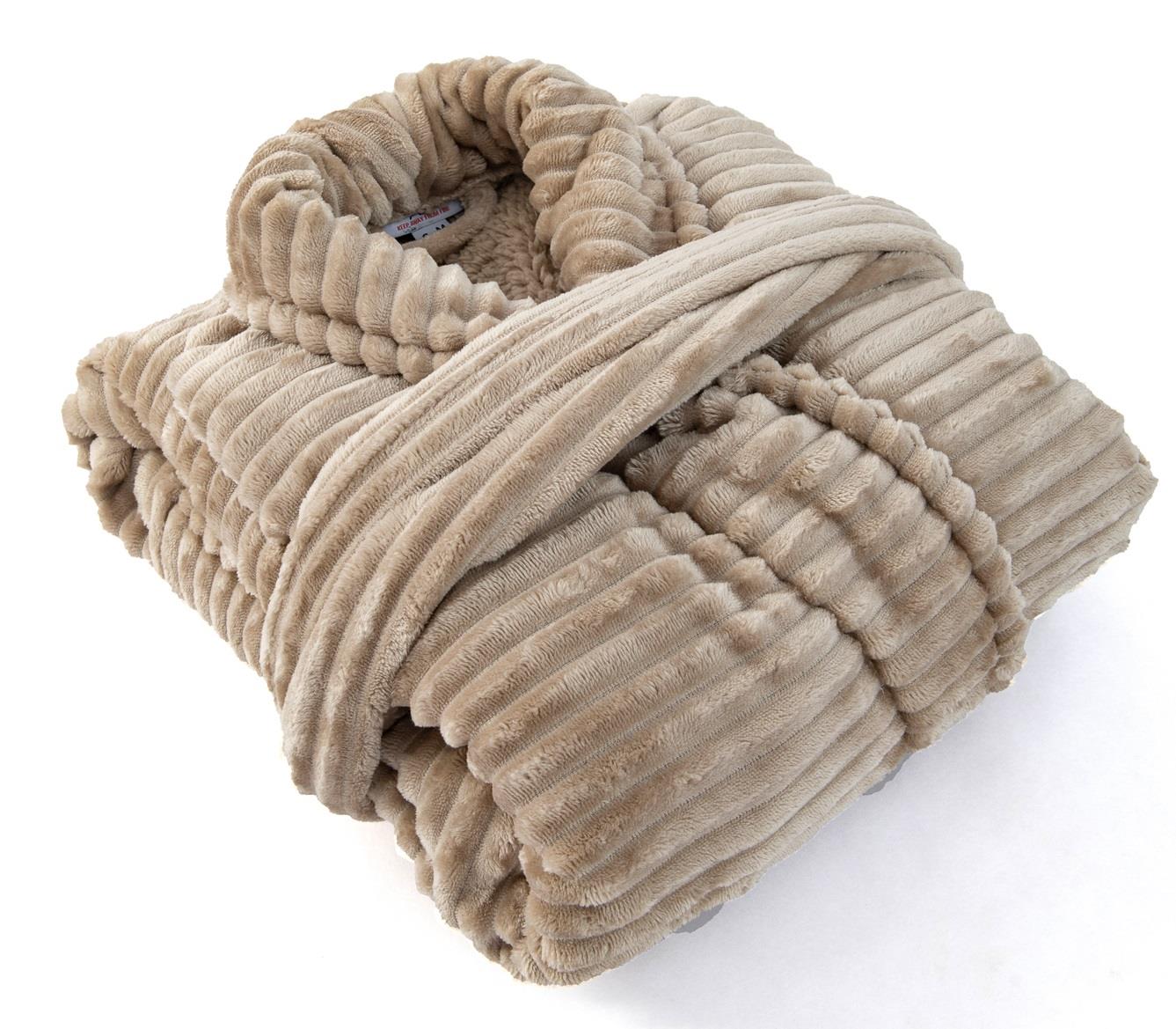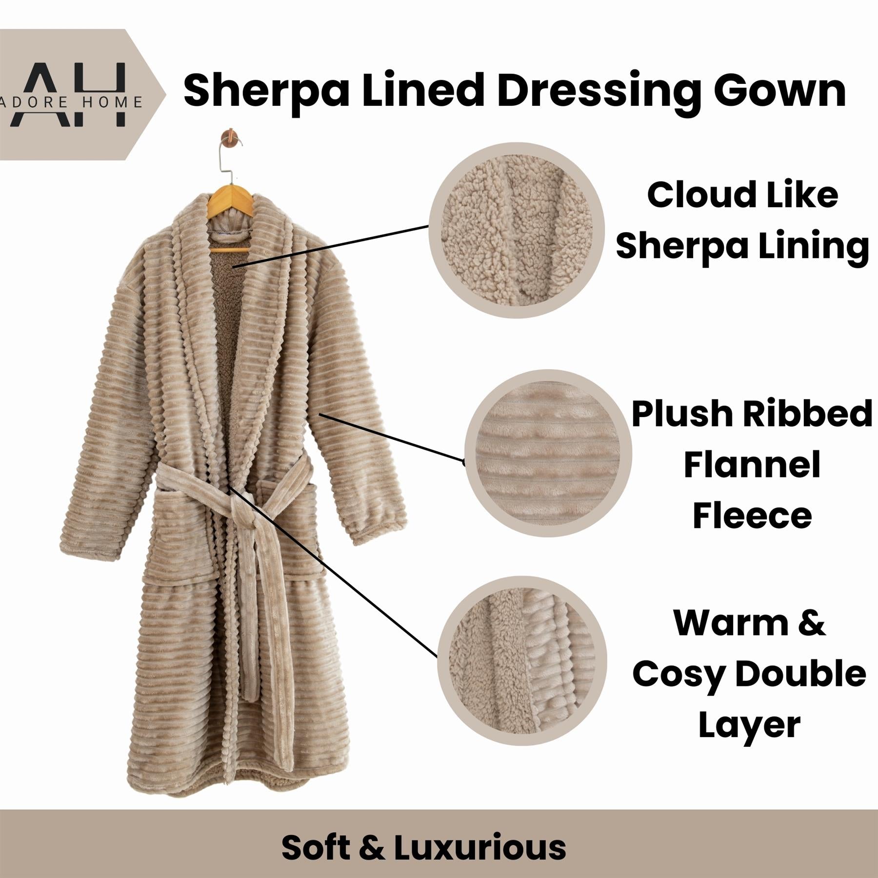 Ladies Ribbed Dressing Gown With Sherpa Lining, Natural