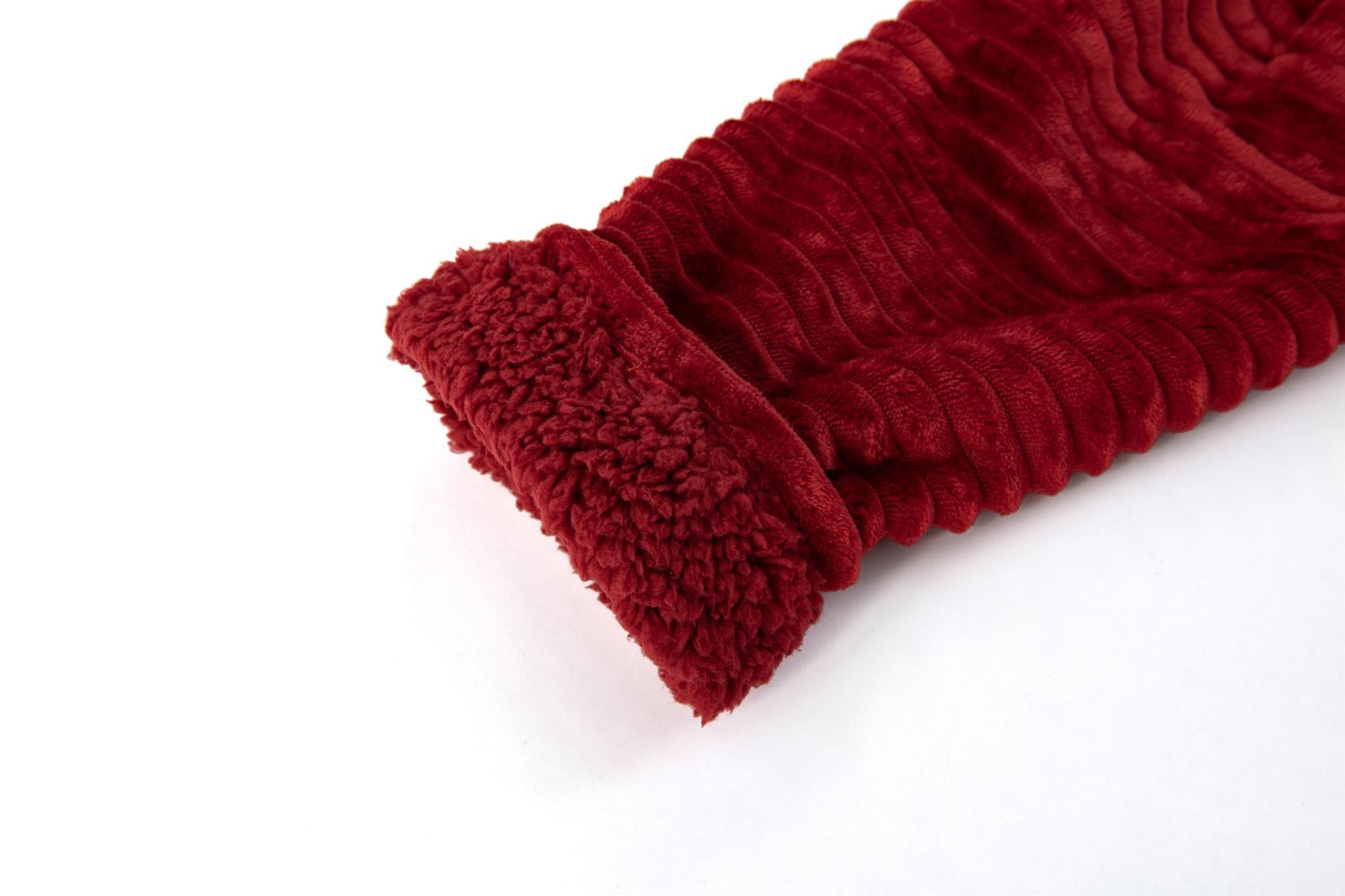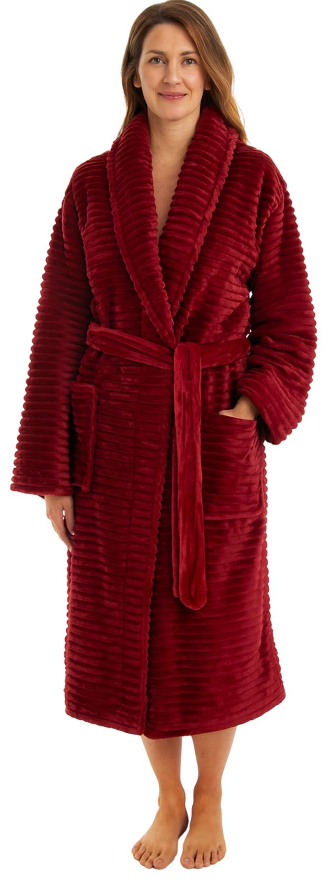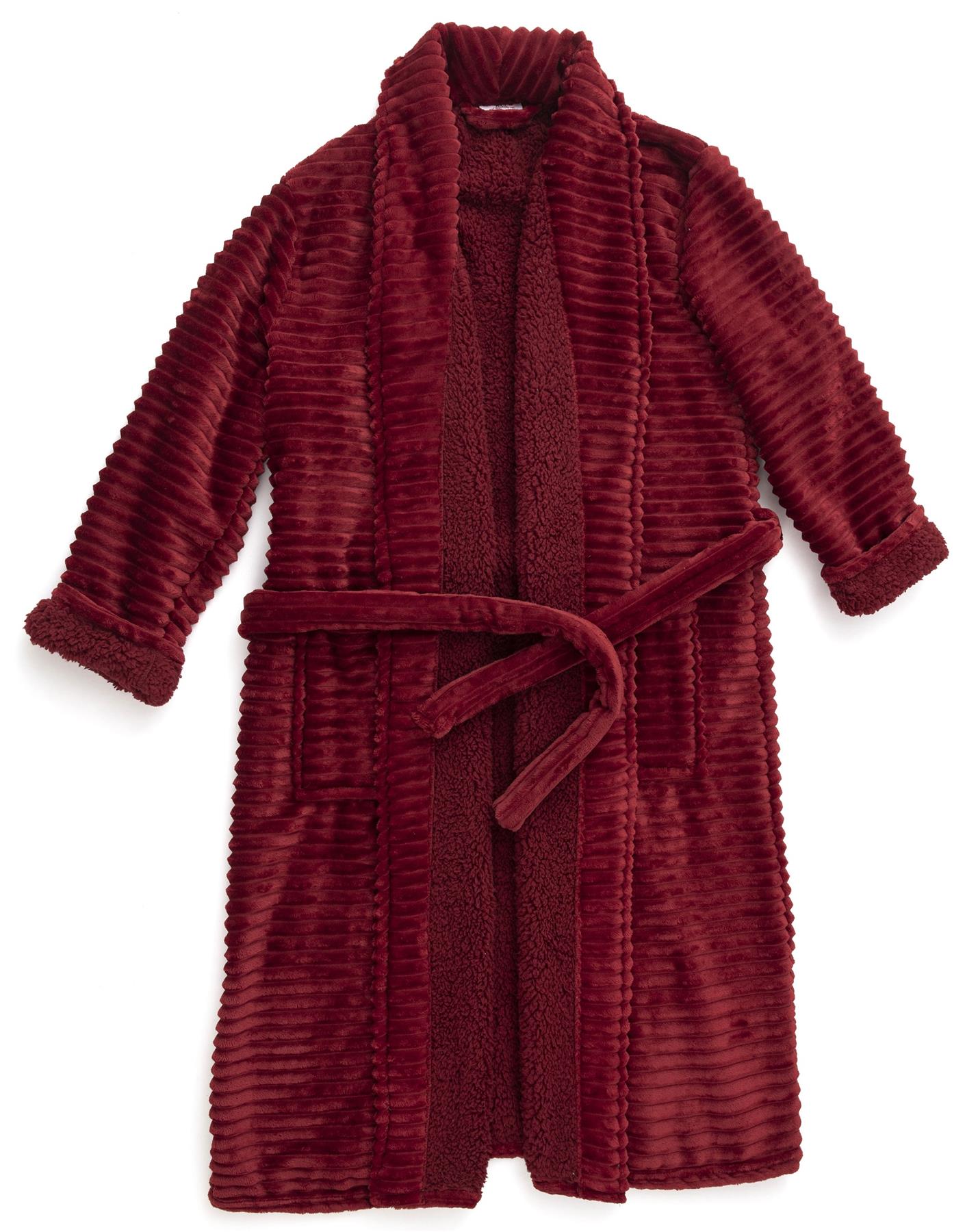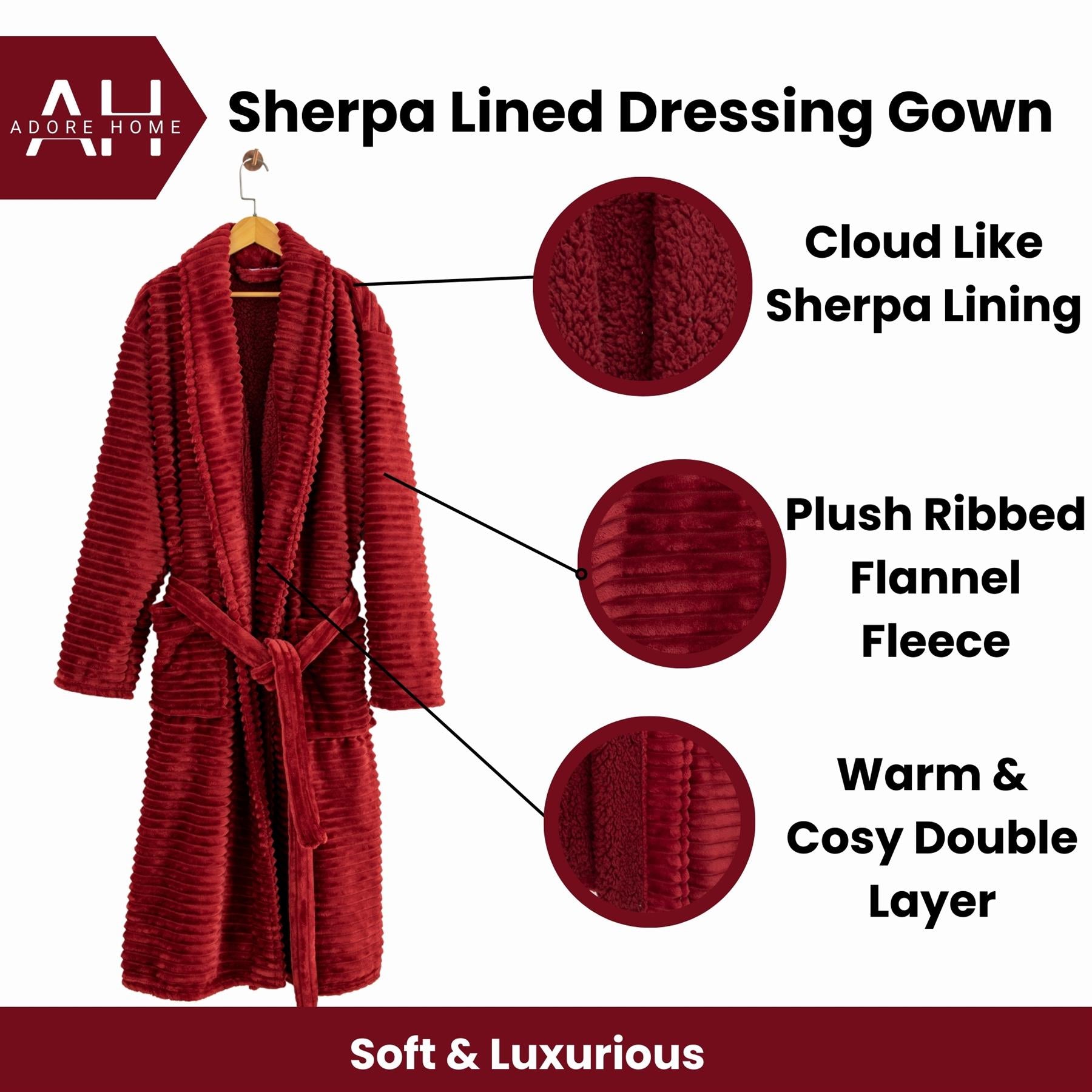 Ladies Ribbed Dressing Gown With Sherpa Lining, Red