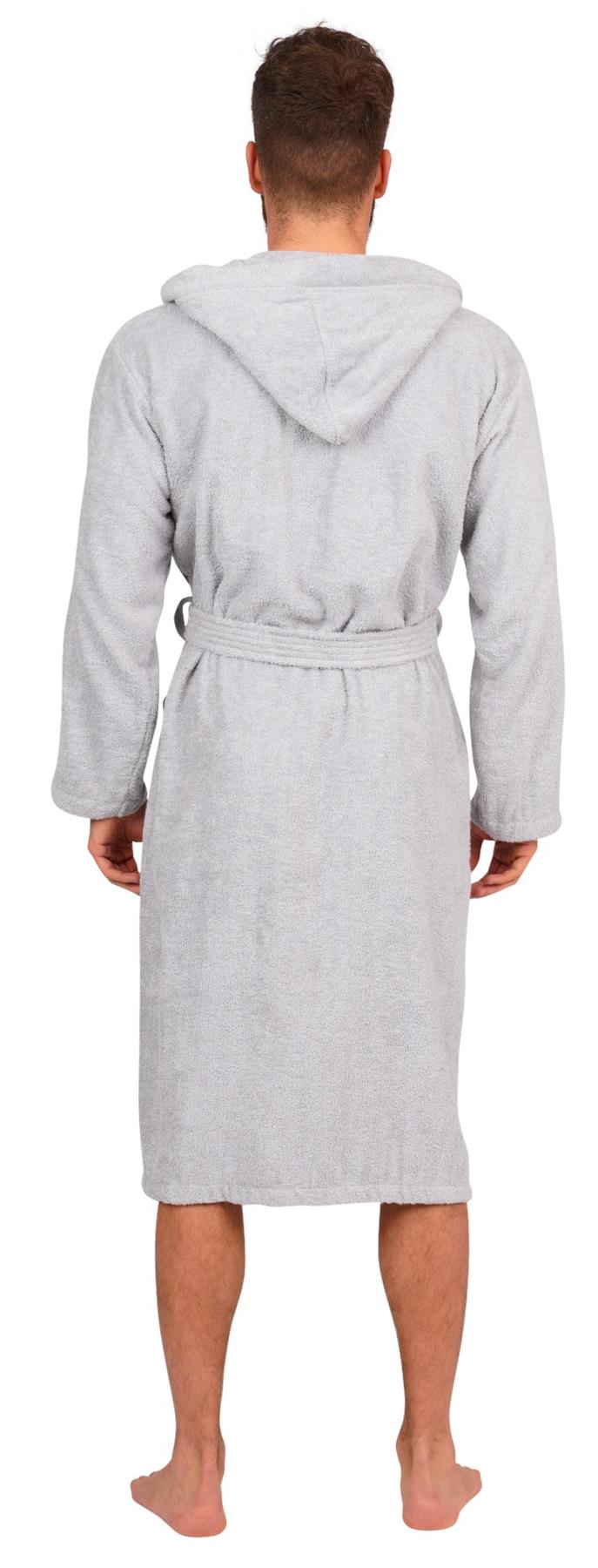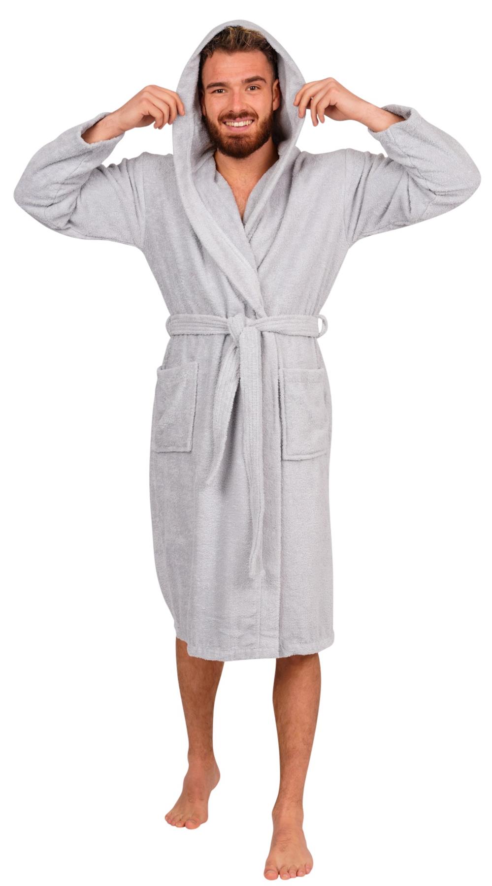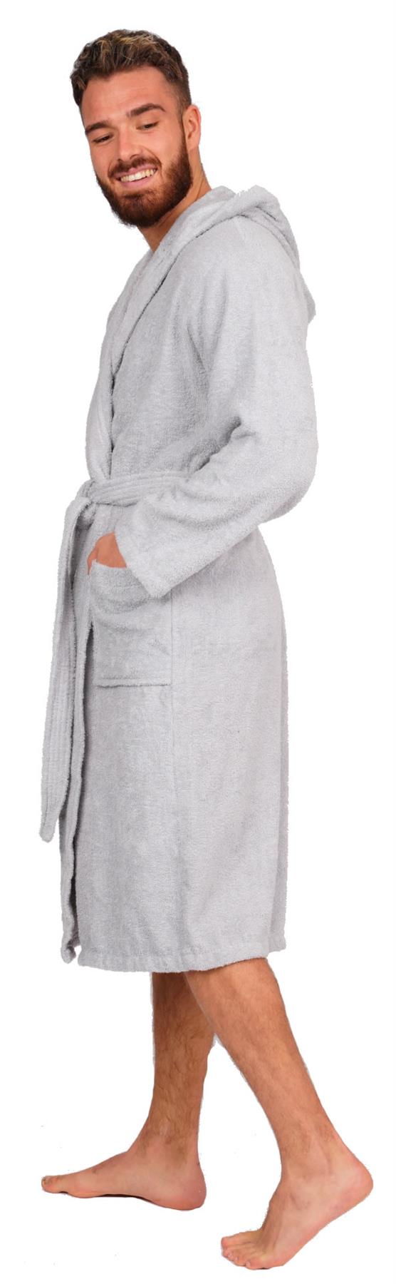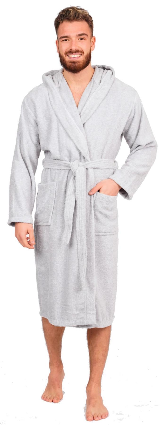 Mens Cotton Towelling Hooded Bathrobe Silver