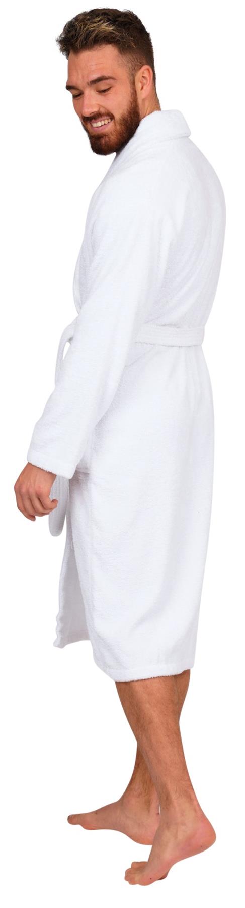 Mens White Cotton Towelling Shawl Collar Bathrobe