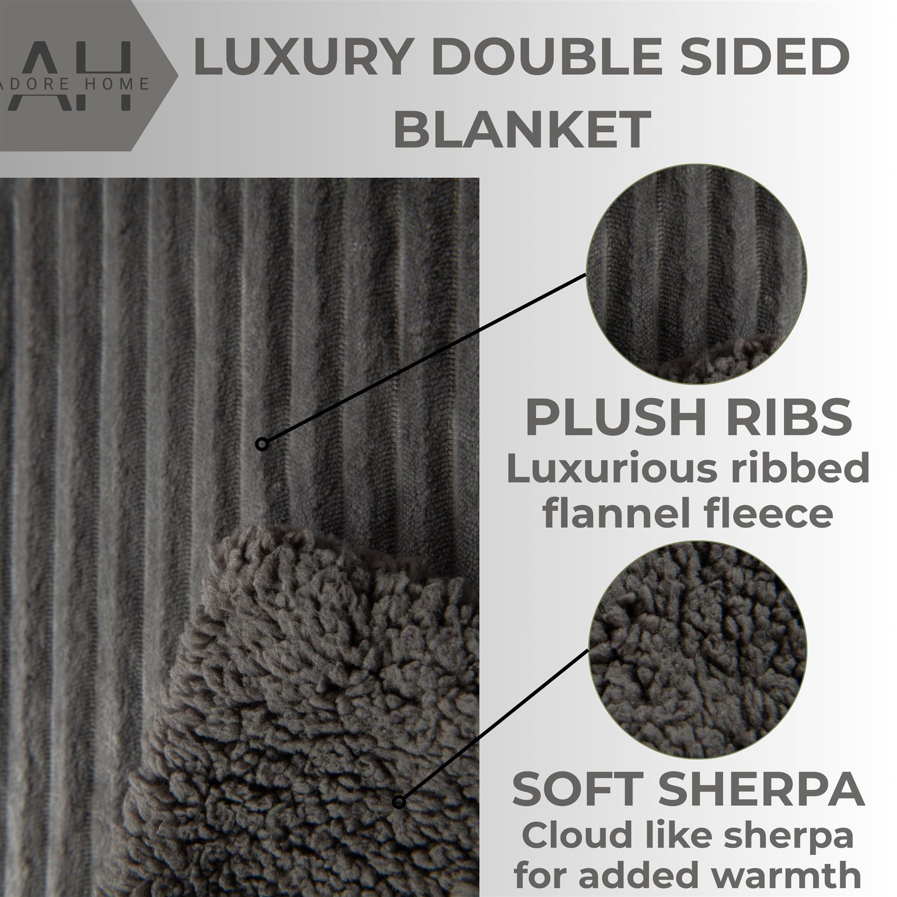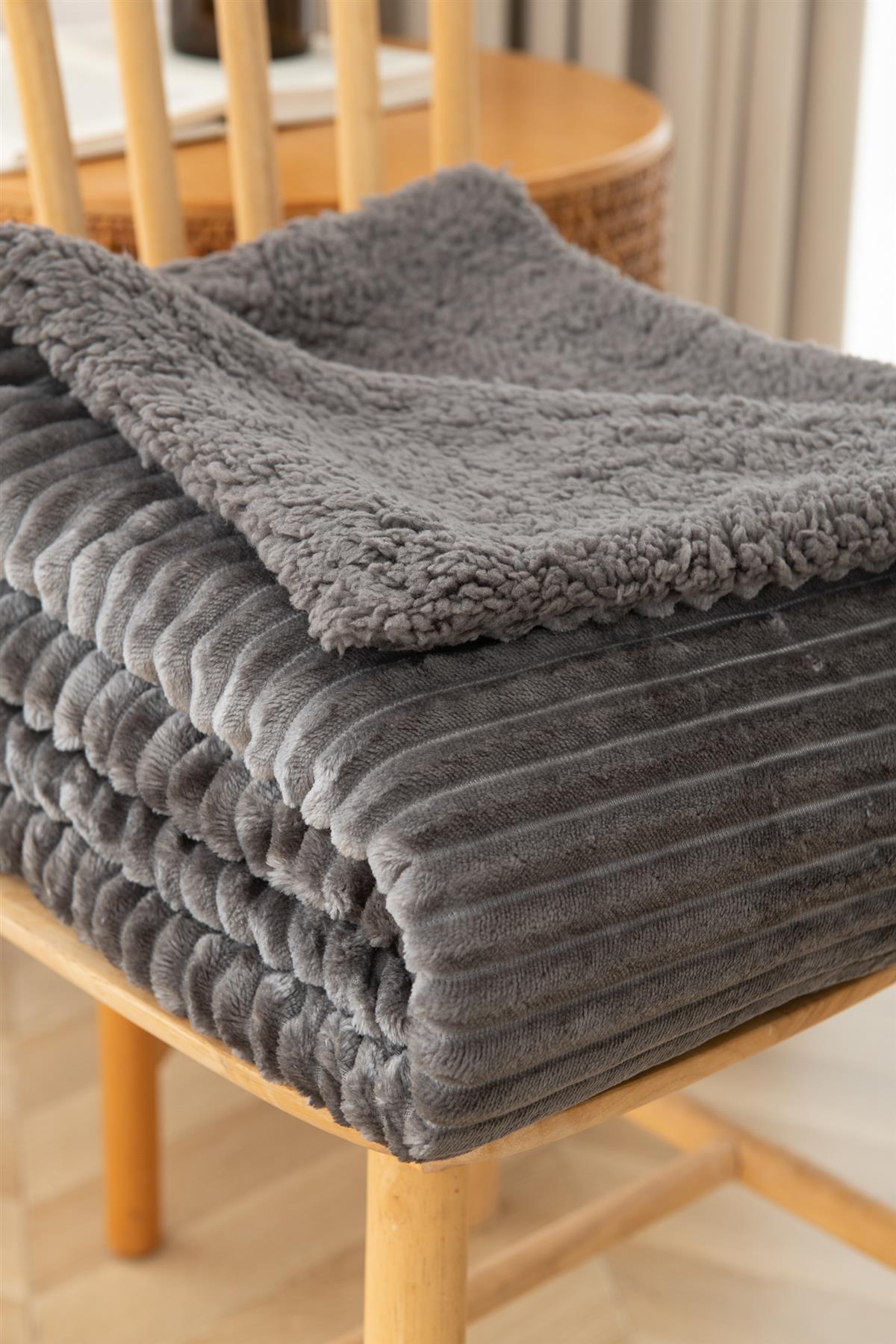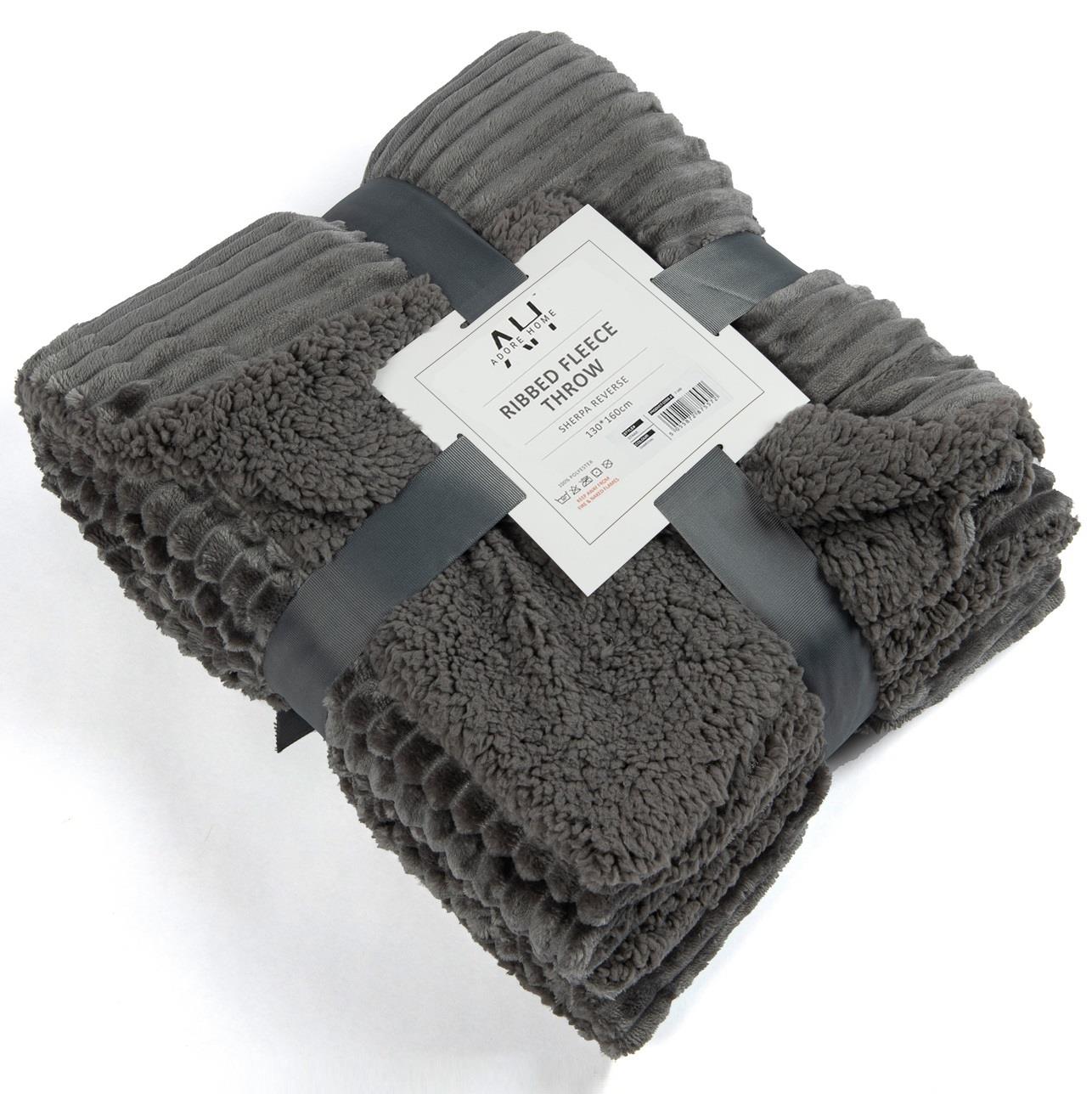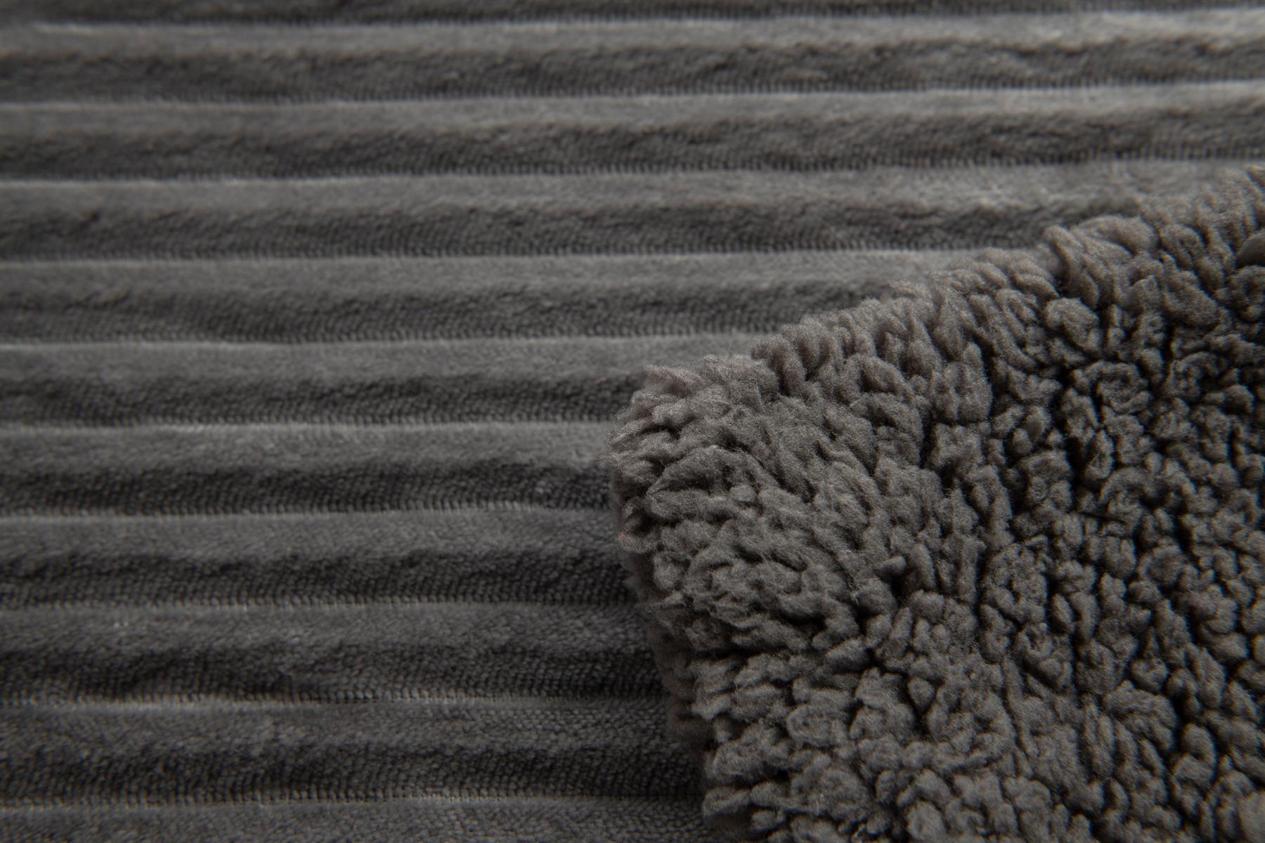 Luxury Ribbed Fleece Sherpa Throw 130x160cm, Charcoal