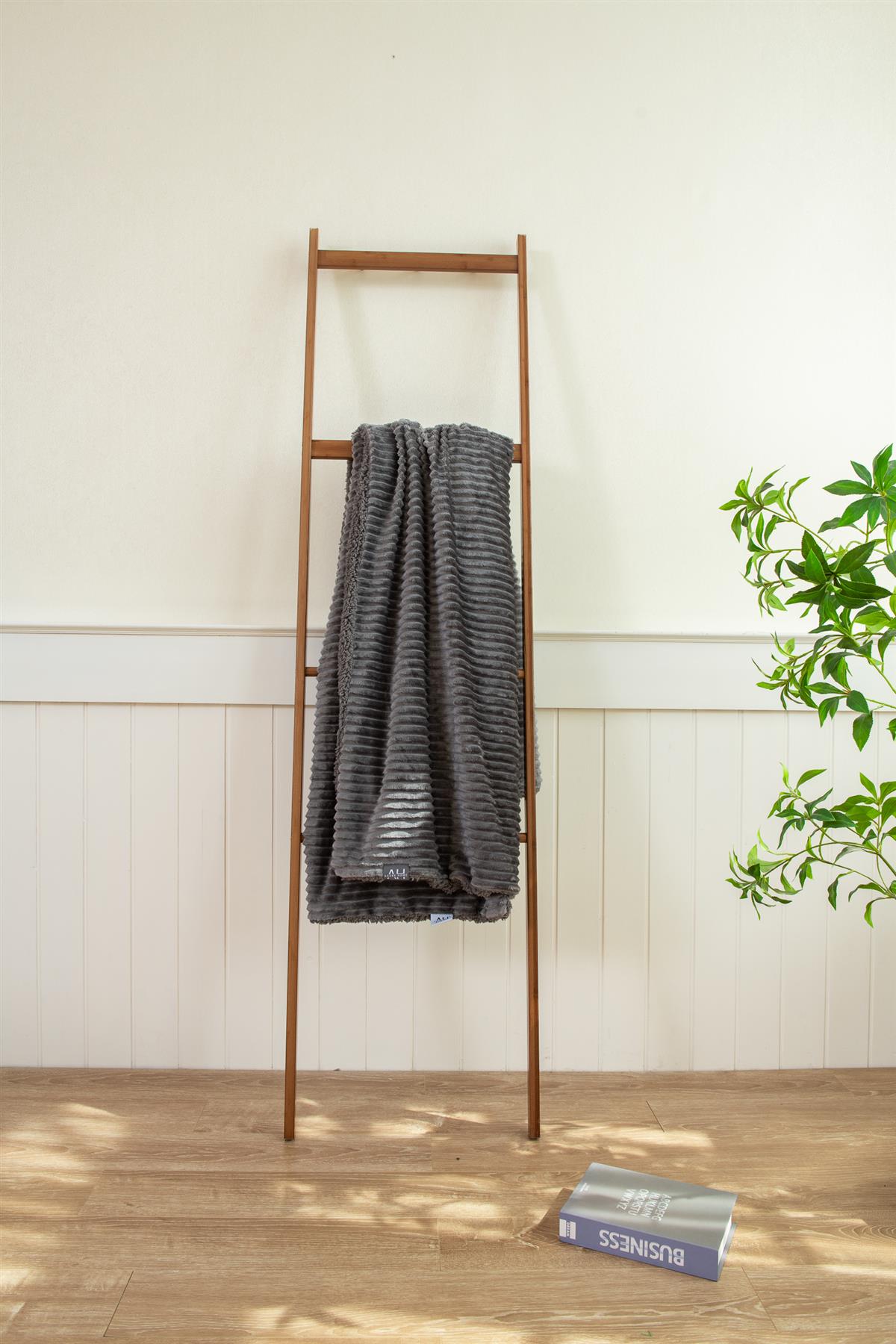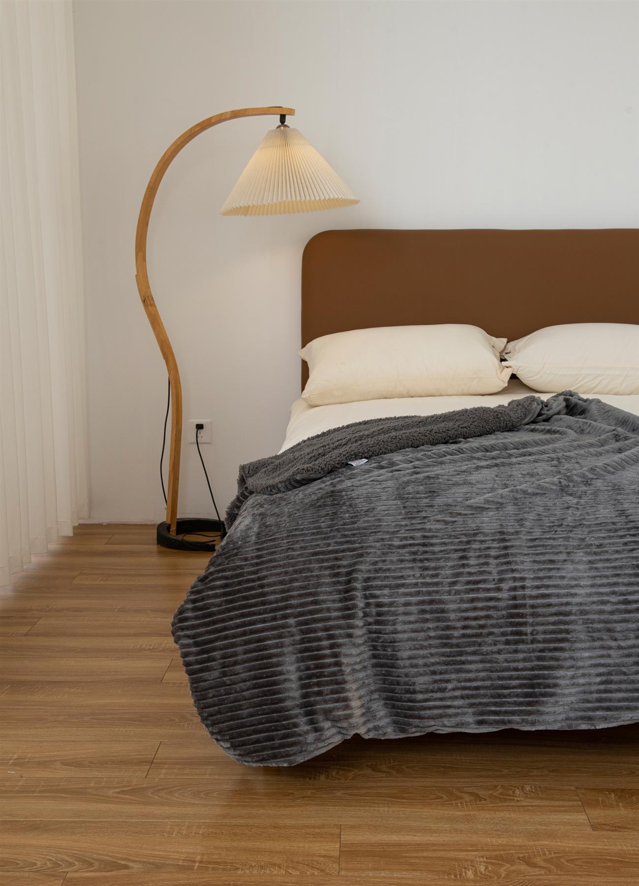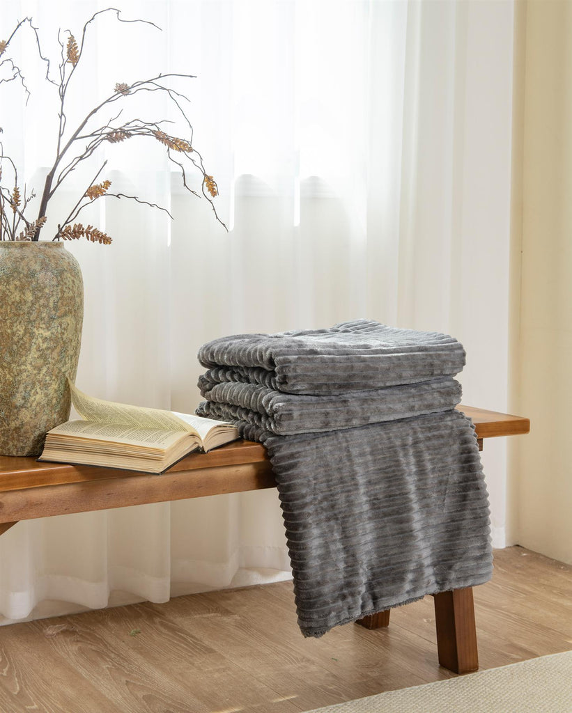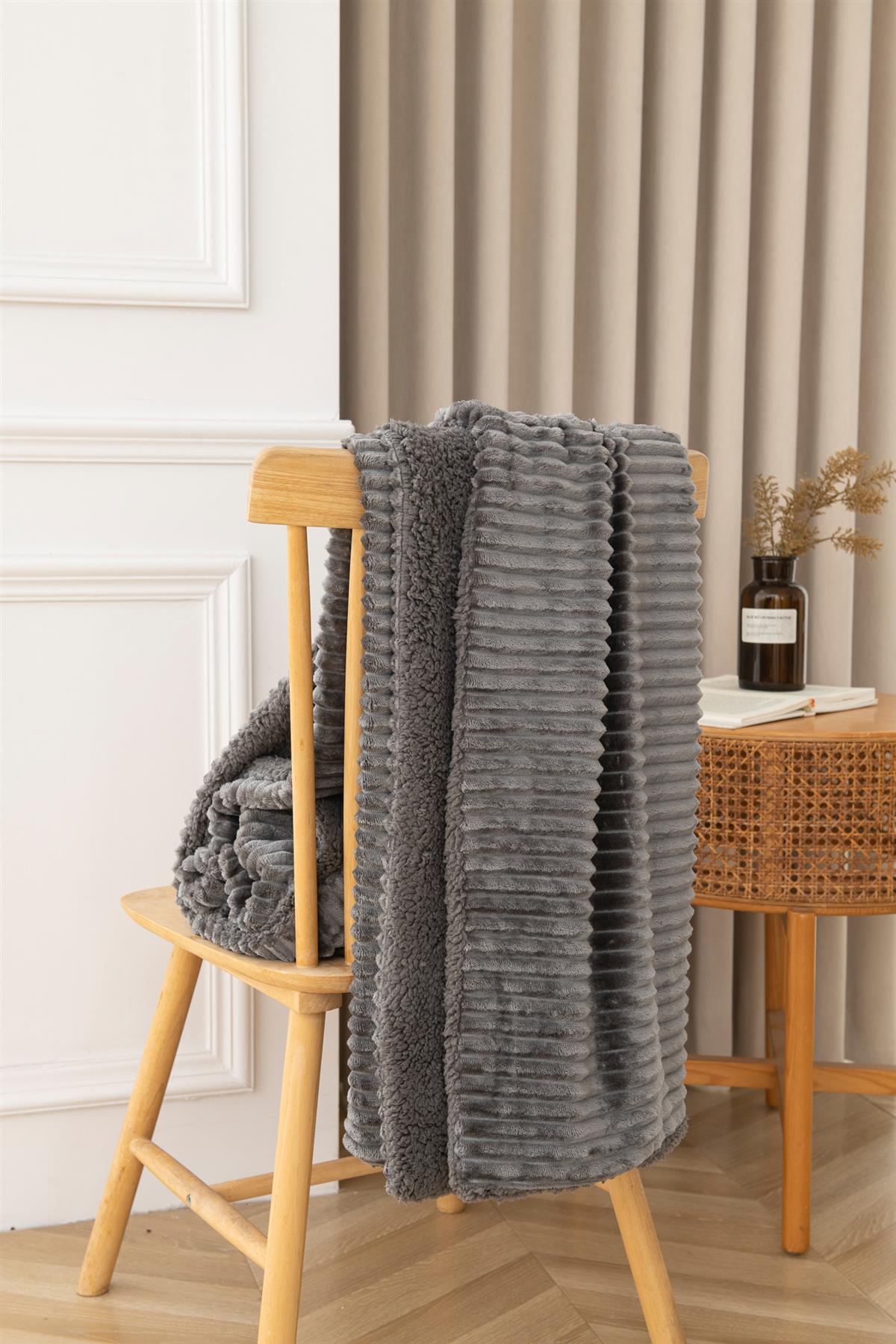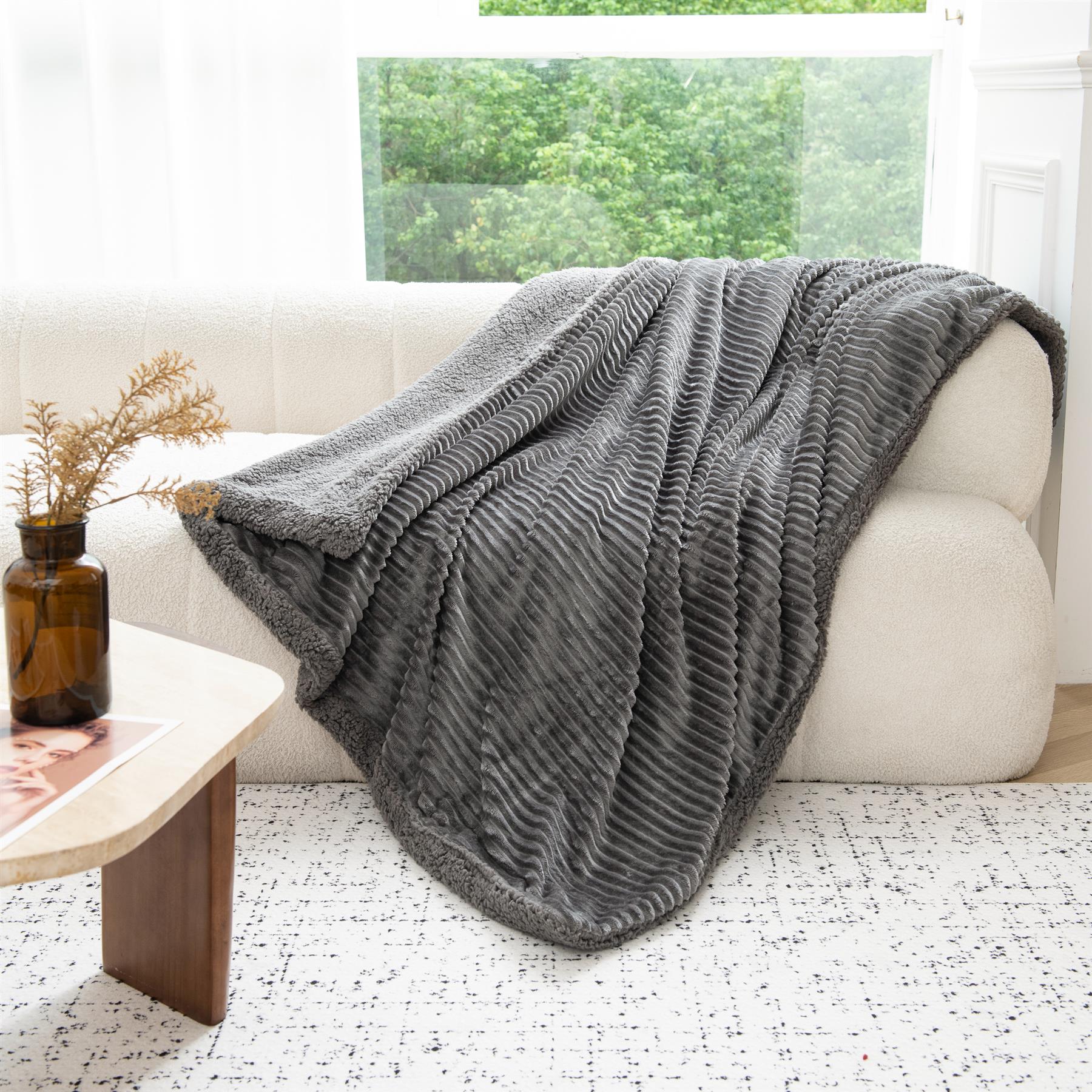 Luxury Ribbed Fleece Sherpa Throw 130x160cm, Charcoal
