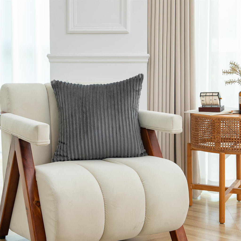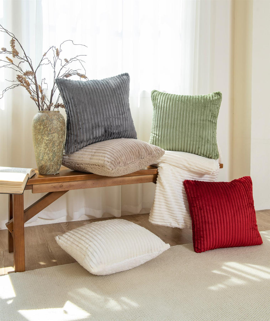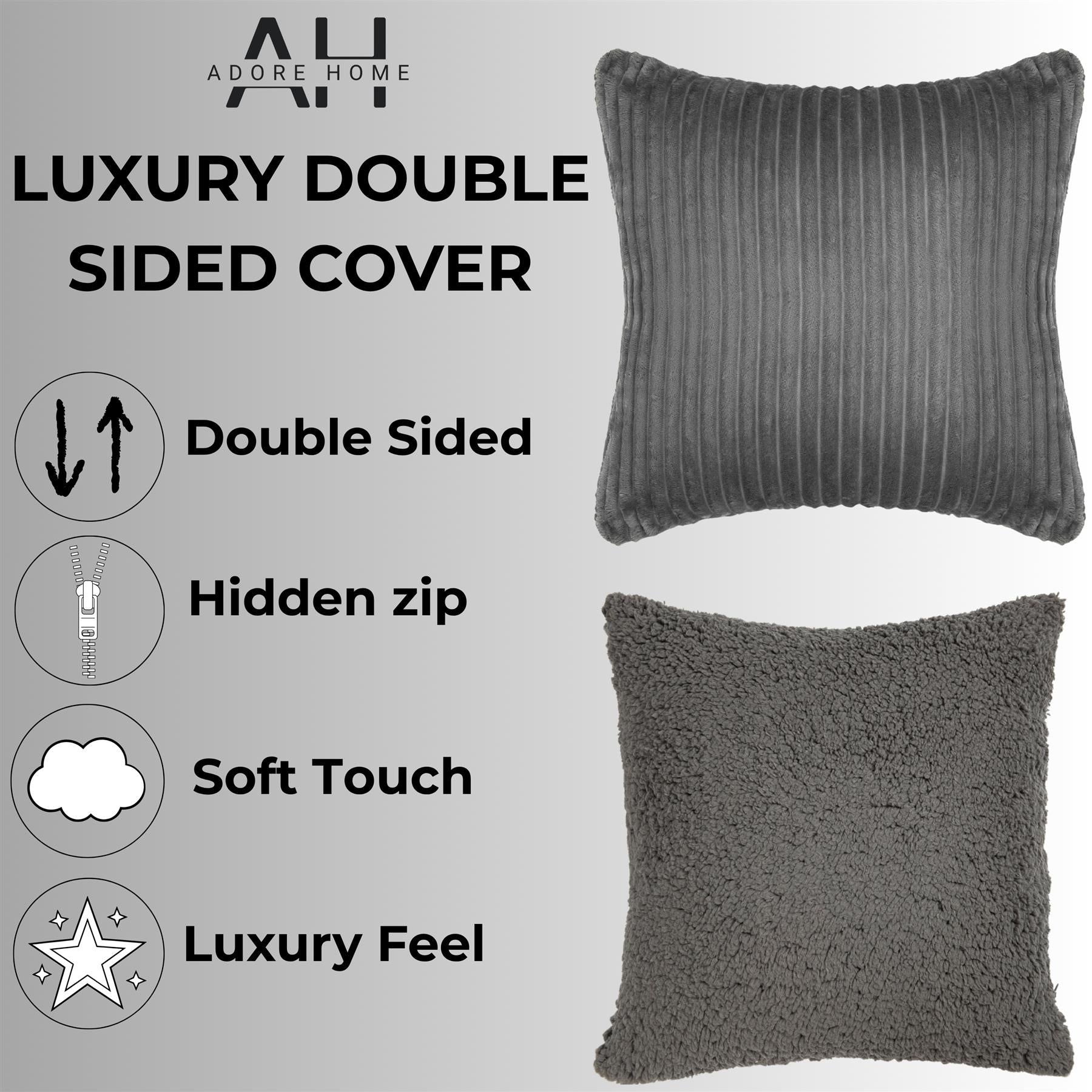 Add cosy texture and modern style to your home with our Ribbed Cushion Cover with Sherpa Reverse in Charcoal. The soft ribbed fleece front adds depth and detail, while the plush sherpa reverse brings warmth and comfort to any room. Perfect for sofas, beds or layering with your favourite throws. Available in packs of 1, 2, 4 or 6 so you can style a single accent cushion or refresh your whole space with ease