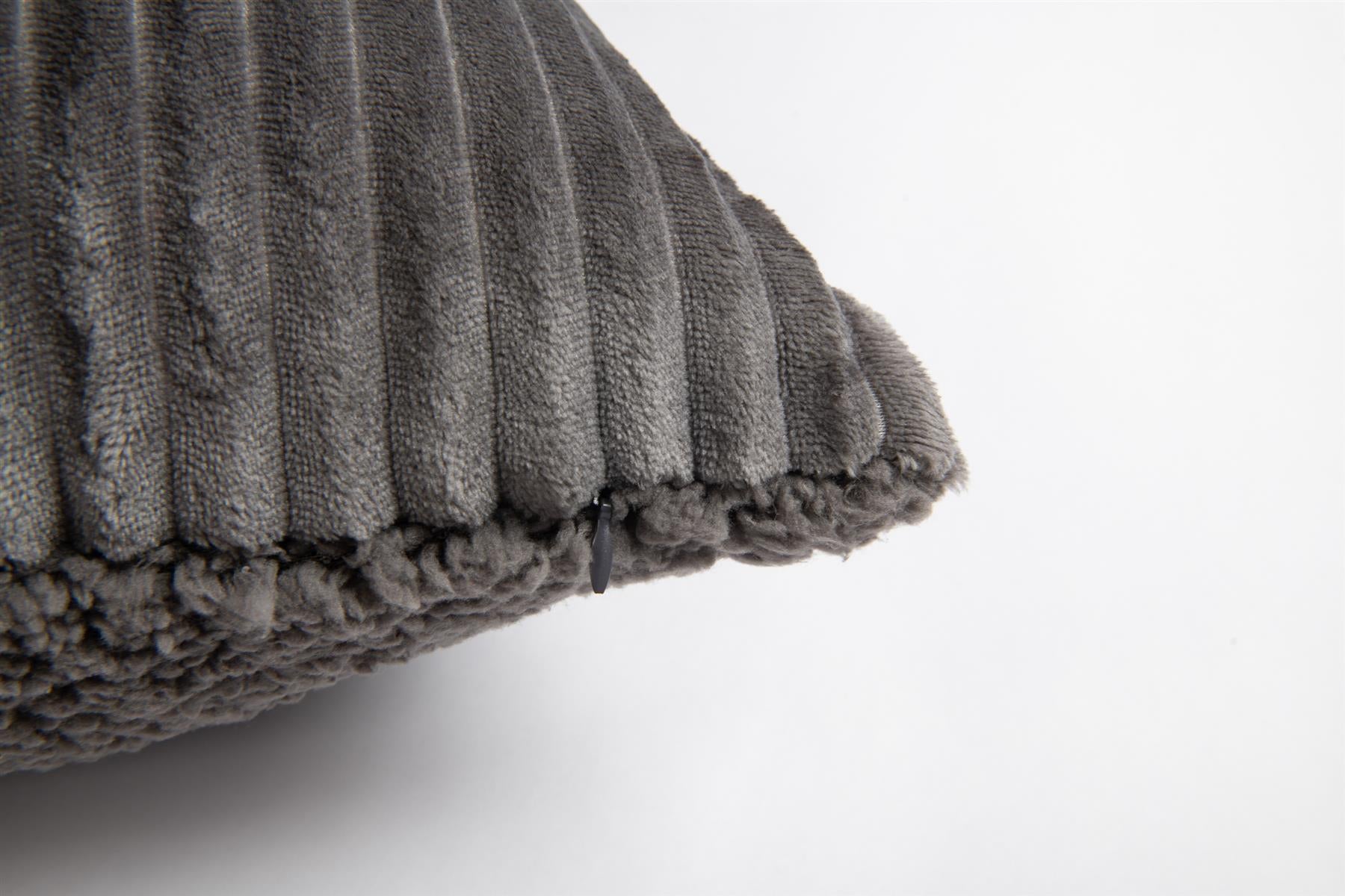 Ribbed Cushion Cover With Sherpa Reverse, Charcoal