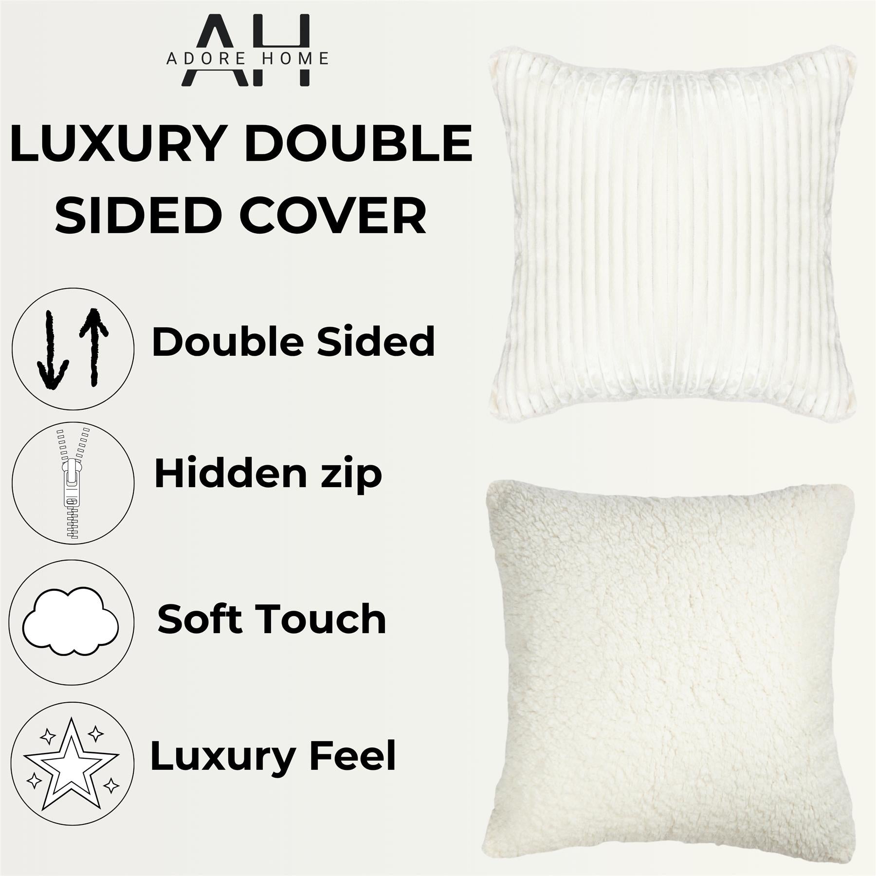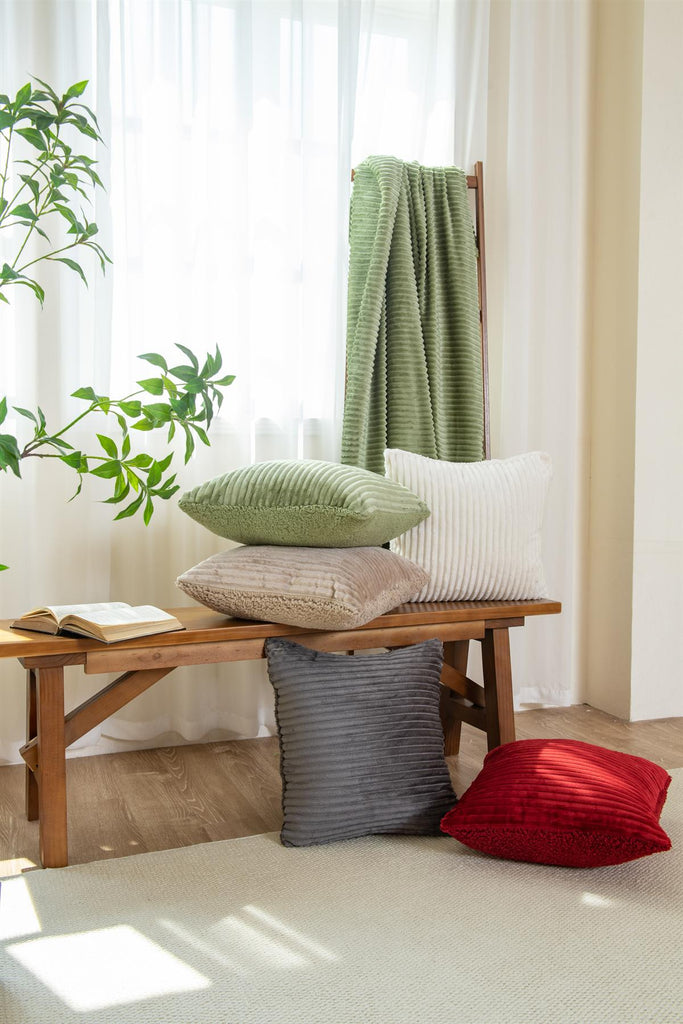 Brighten your space with our Ribbed Cushion Cover with Sherpa Reverse in Cream. The soft ribbed texture adds gentle detail, while the sherpa backing brings a warm, inviting feel. A perfect neutral for creating calm, cosy interiors. Available in 1, 2, 4 or 6 packs.