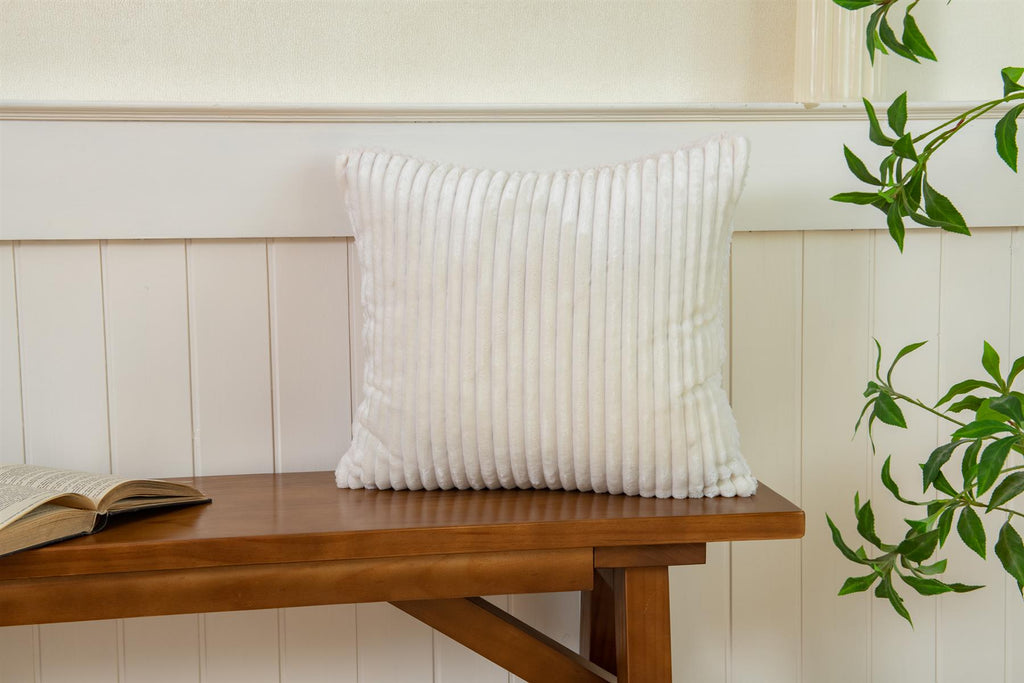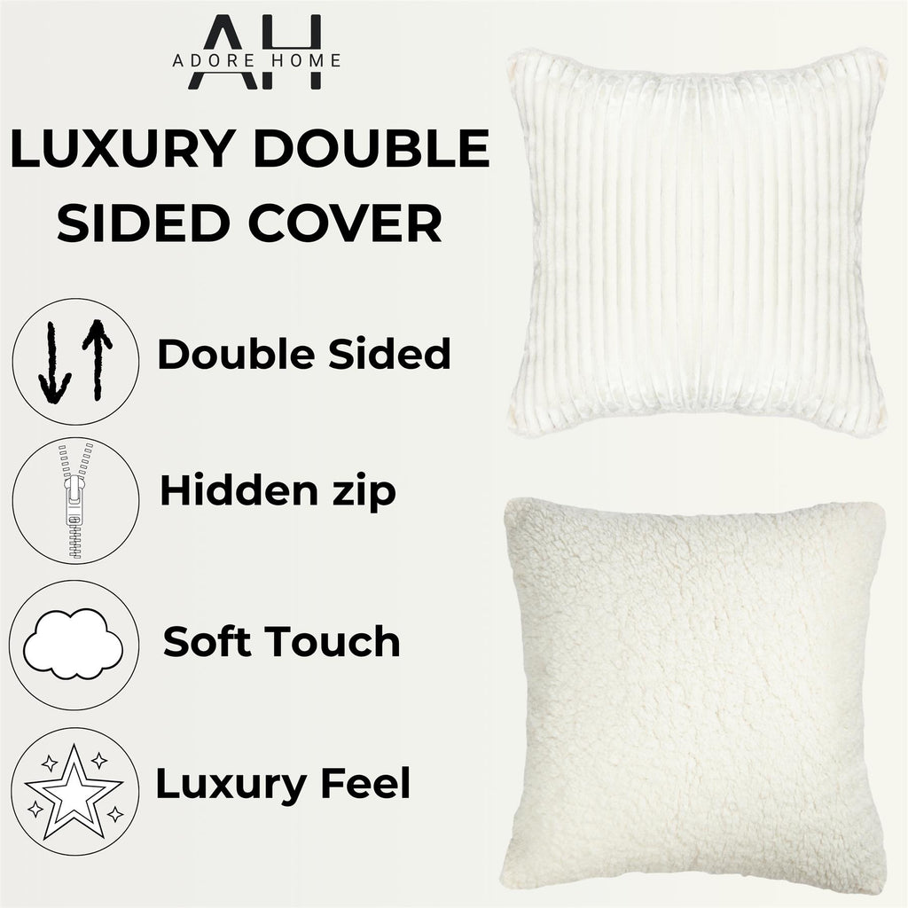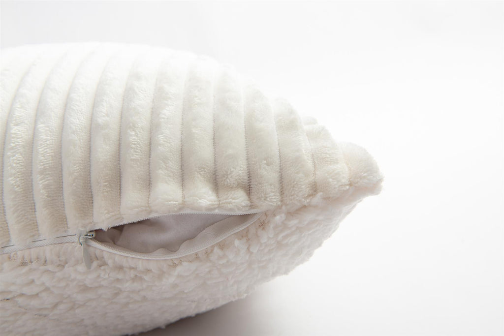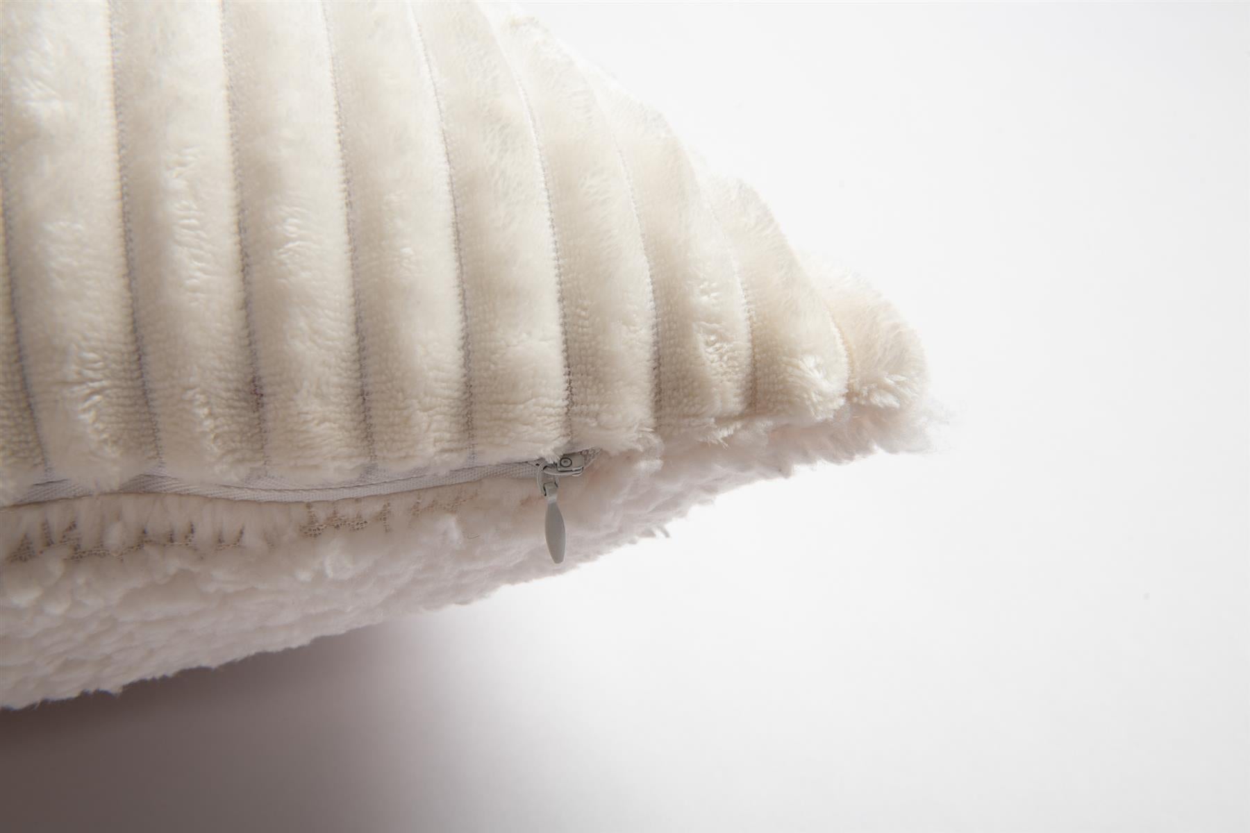Ribbed Cushion Cover With Sherpa Reverse, Cream