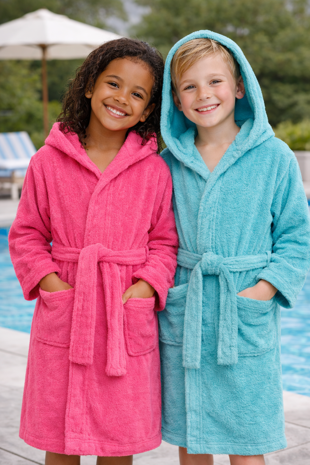 - Boys & girls 100% cotton hooded bathrobe.