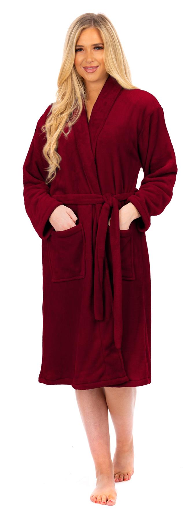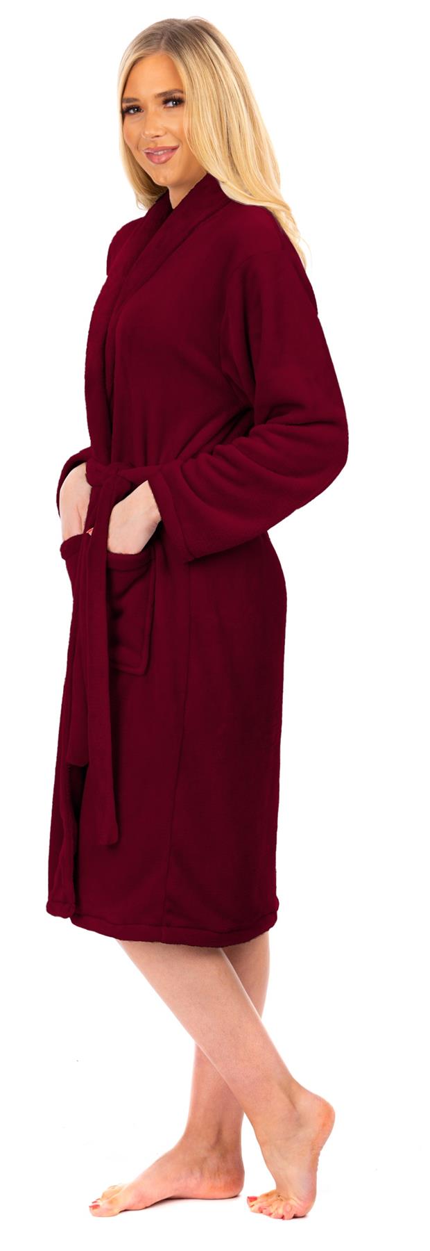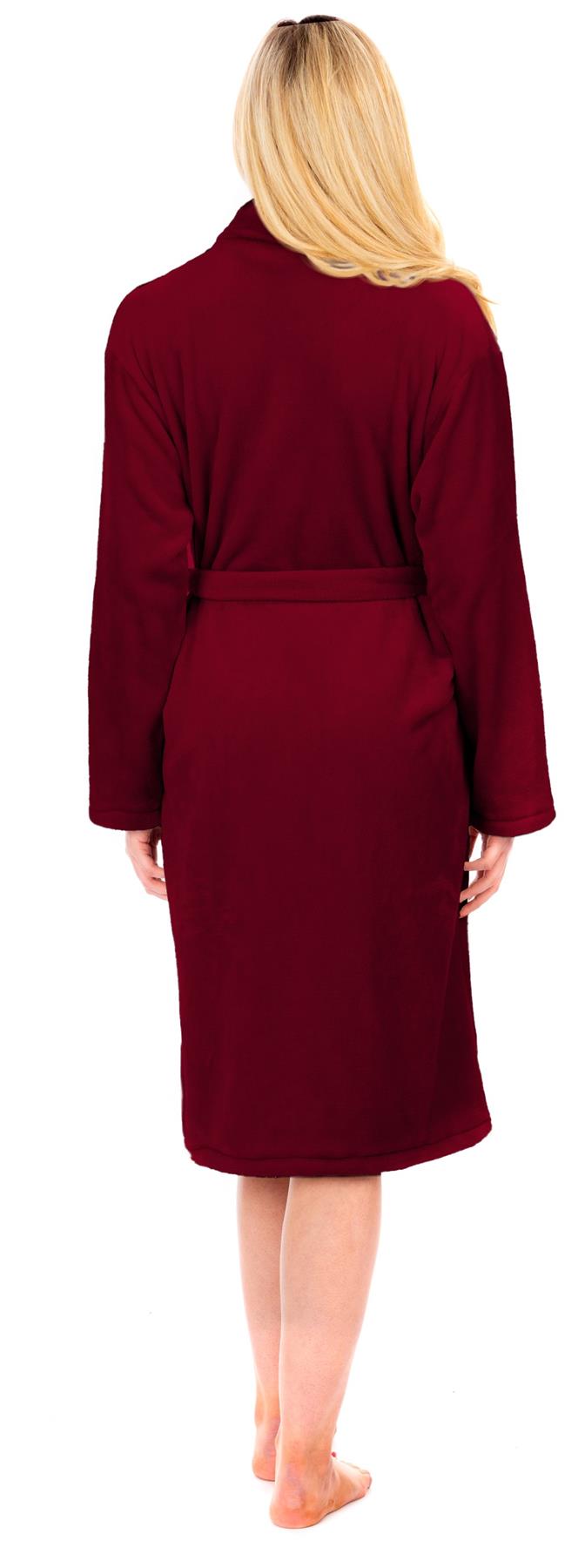 Ladies Aubergine Flannel Fleece Bathrobe
