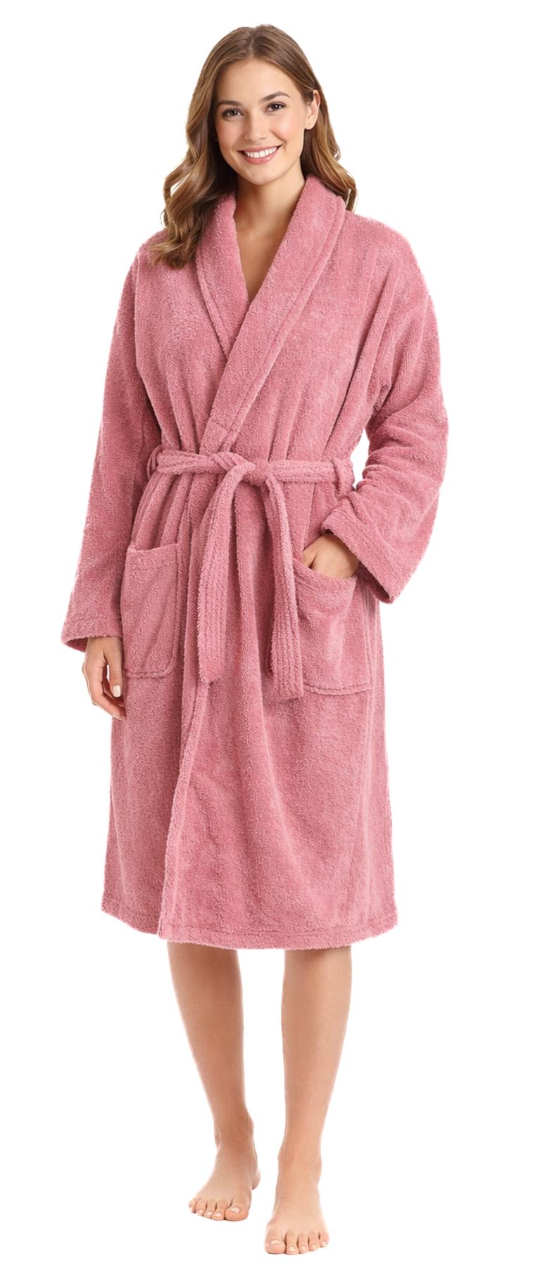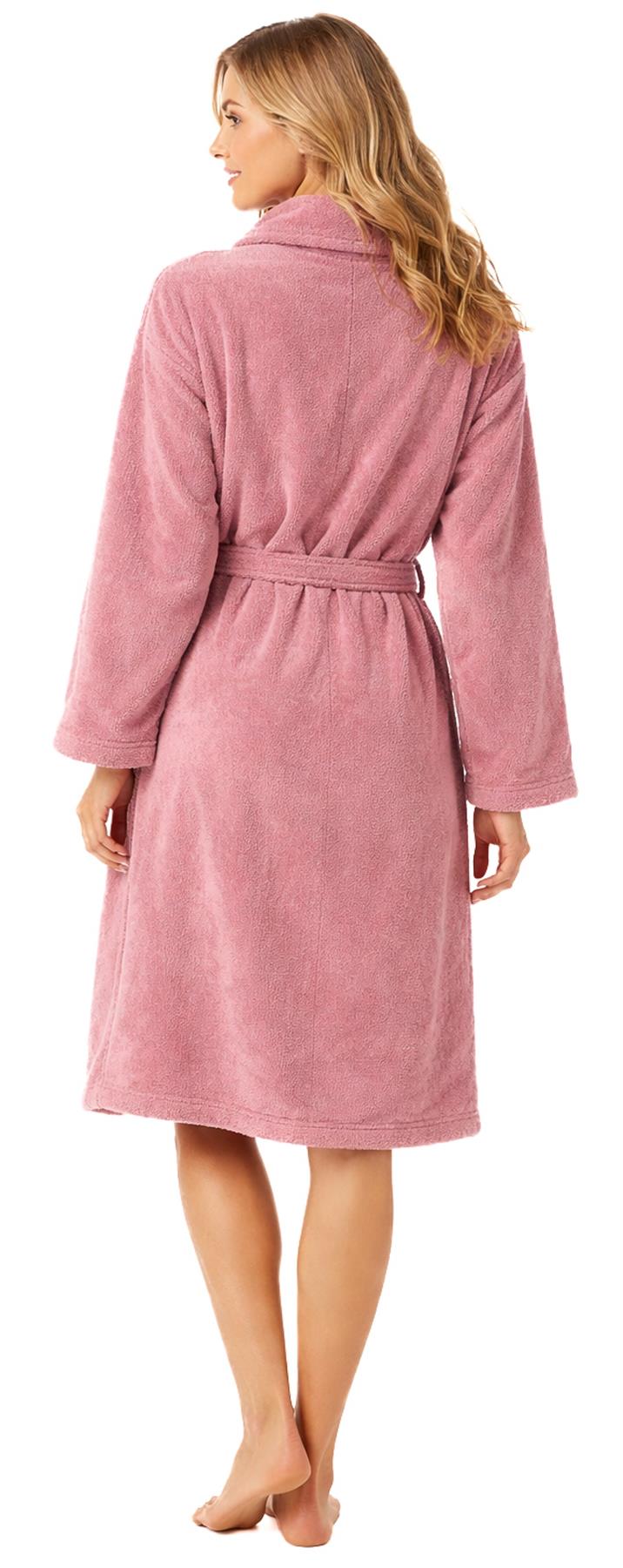 Ladies Rose Pink Cotton Towelling Shawl Collar Bathrobe