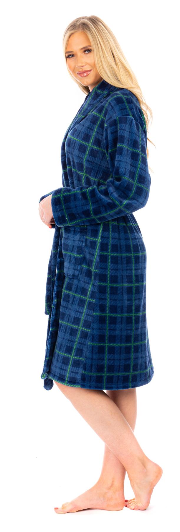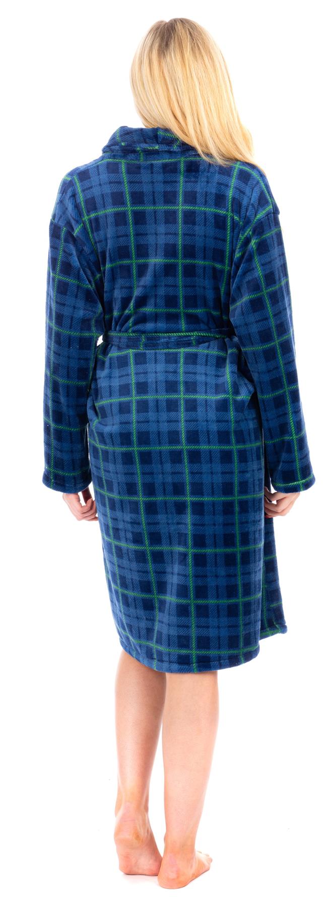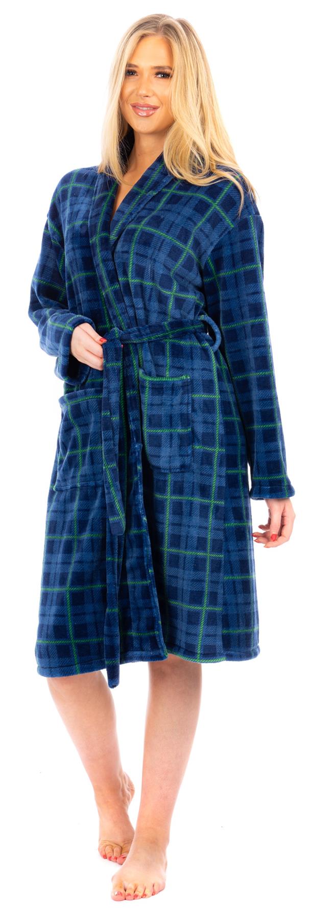 Ladies Checked Blue Flannel Fleece Bathrobe
